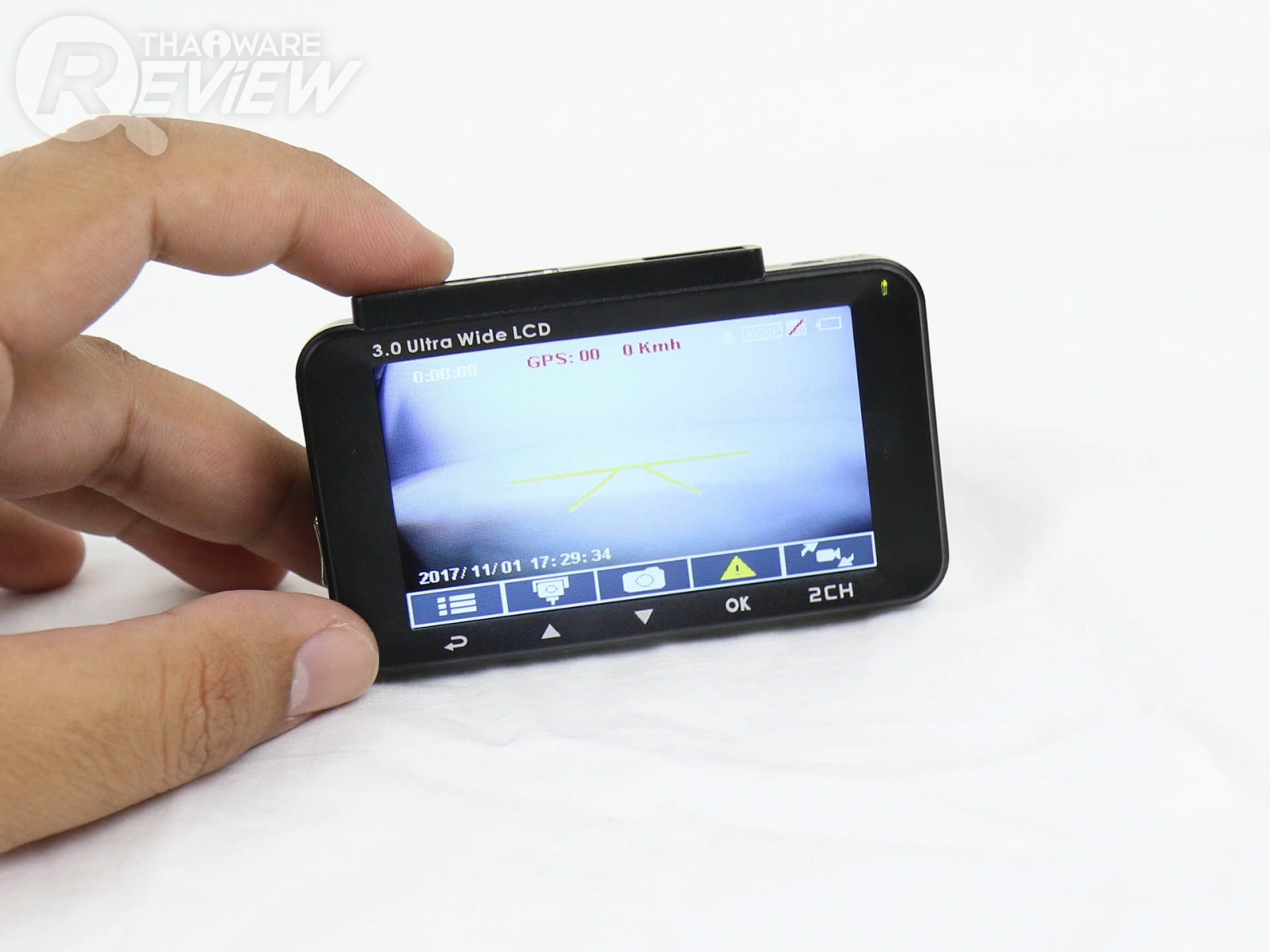 เมนูบนจอเรียบง่าย มองเห็นได้ชัด สามารถตั้งให้จอแสดงผลตลอดเวลา หรือดับอัตโนมัติก็ได้ สามารถตั้งค่าเตือน LDWS, FCWS ได้ด้วย