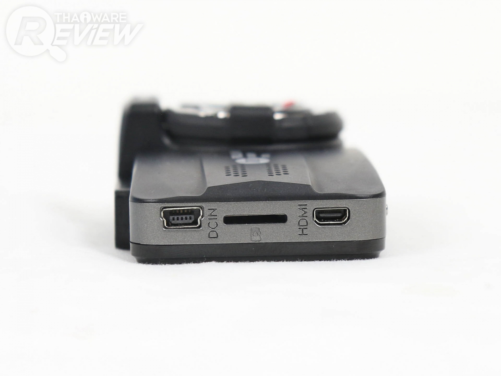 ด้านขวาของตัวกล้องเป็นที่อยู่พอร์ตเชื่อมต่อต่างๆ โดยจะมีช่องจ่ายไฟแบบ Mini USB, ช่องเสียบการ์ด Micro SD และ HDMI out