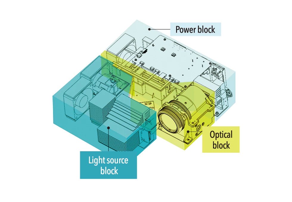 โครงสร้างภายในตัวเครื่องของ Casio XJ-V2 ได้รับการออกแบบให้มีการแยกเป็น 3 ส่วน โดยในส่วนของแหล่งกำเนิดแสงหลักหรือ Light source block ได้รับการปกป้องจากฝุ่นเป็นอย่างดี ทำให้คุณภาพการฉายไม่ Drop ลง แม้จะใช้งานในสภาพแวดล้อมที่มีฝุ่นเยอะ