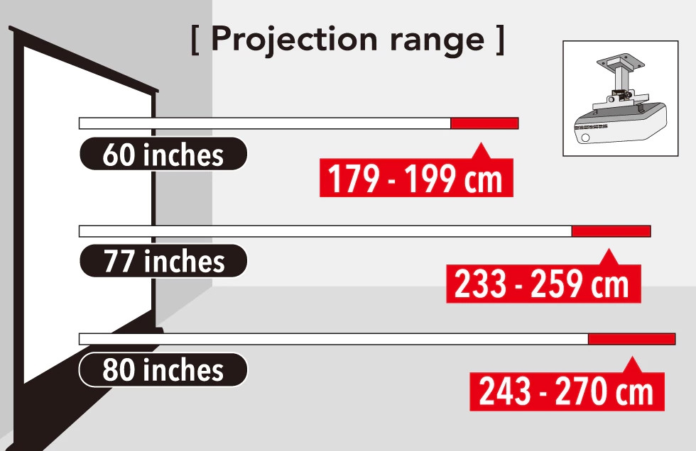 และ CASIO XJ-V2 รองรับทั้งการใช้งานแบบตั้งวางตัวเครื่องบนโต๊ะ และการติดตั้งแบบห้อยลงมาจากเพดาน โดยขนาดความใหญ่ของจอฉายจะสัมพันธ์กับระยะการถอยวางตัวเครื่อง คือถ้ายิ่งตั้งเครื่องโปรเจคเตอร์ห่างจากจอ ก็จะได้ขนาดการฉายที่ใหญ่ขึ้น ถ้าตั้งเครื่องห่างจากจอในระยะประมาณ 2 เมตร ก็จะได้ขนาดการฉาย 60 นิ้ว และถ้าถอยเครื่องห่างออกไปประมาณ 2 เมตรครึ่งก็จะได้ขนาดการฉาย 80 นิ้วครับ