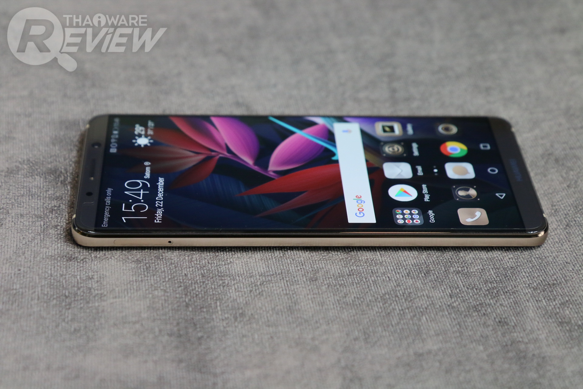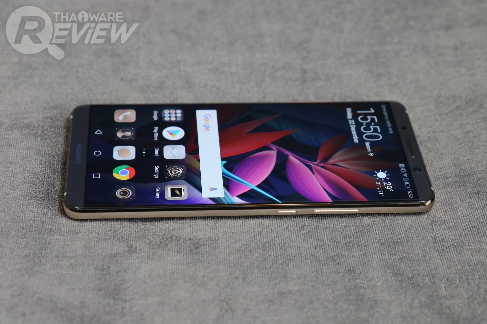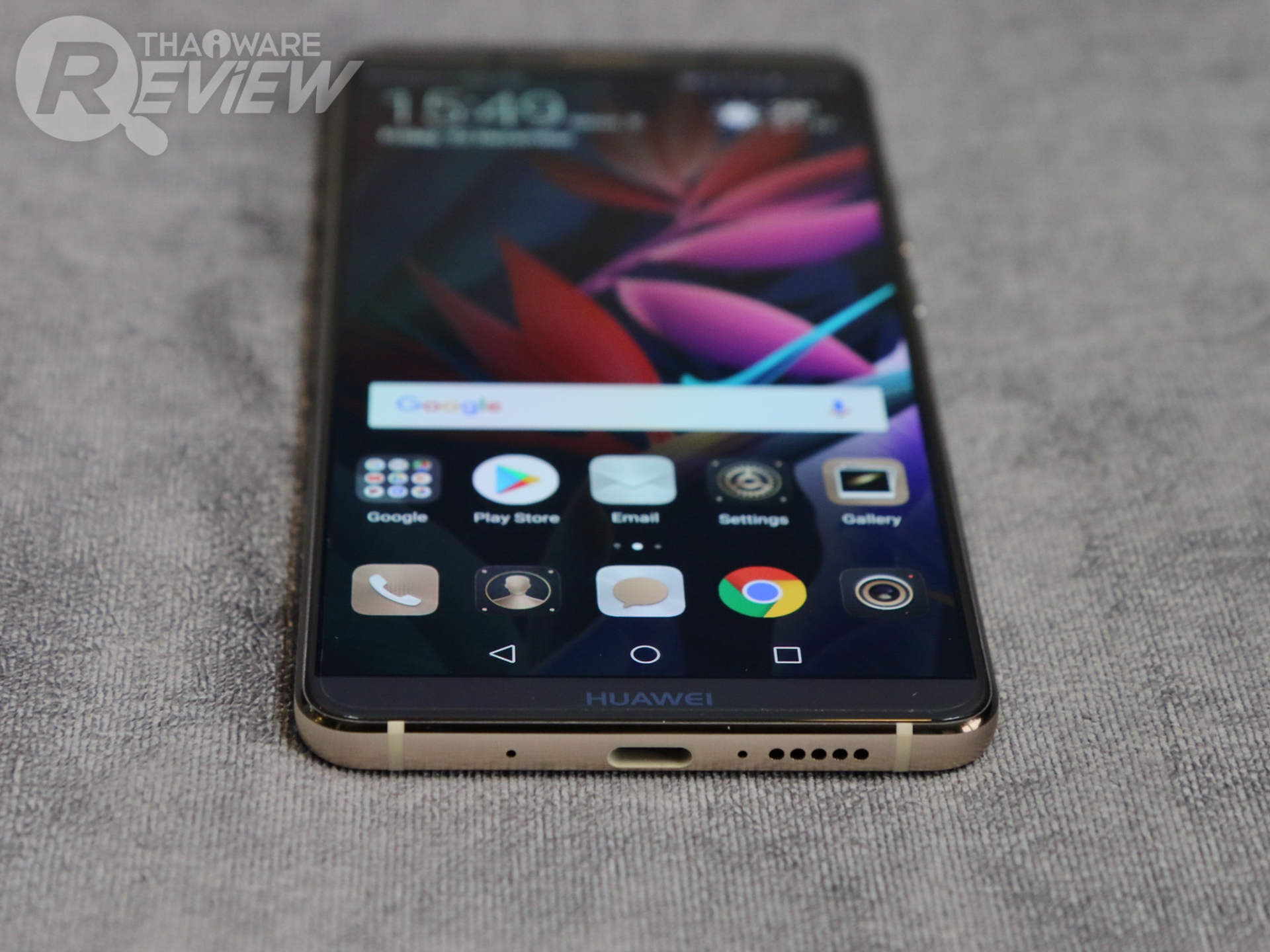 ตัวเครื่องมีการผสมผสานระหว่างโลหะกับกระจก แอบสังเกตว่าเรือธงปีนี้ส่วนใหญ่จะใช้วัสดุแบบนี้กันทั้งนั้น อย่างเช่นใน Galaxy Note 8 หรือ iPhone X เป็นต้น ในส่วนของงานประกอบนั้นก็เนี้ยบมาก ซึ่ง Huawei ไม่ค่อยทำให้ผมผิดหวังอยู่แล้วเรื่องคุณภาพงานประกอบ สวยงาม และดูแข็งแรงดี