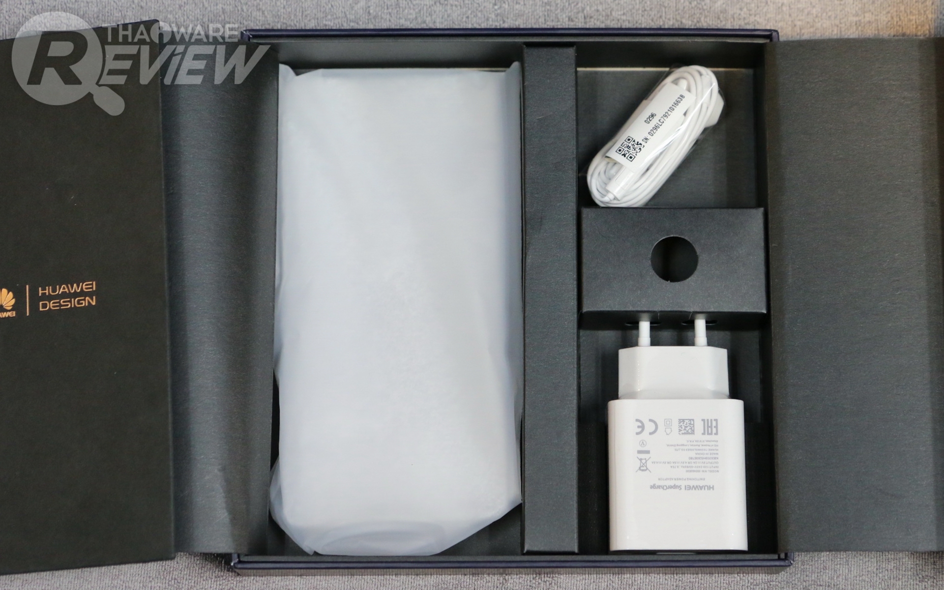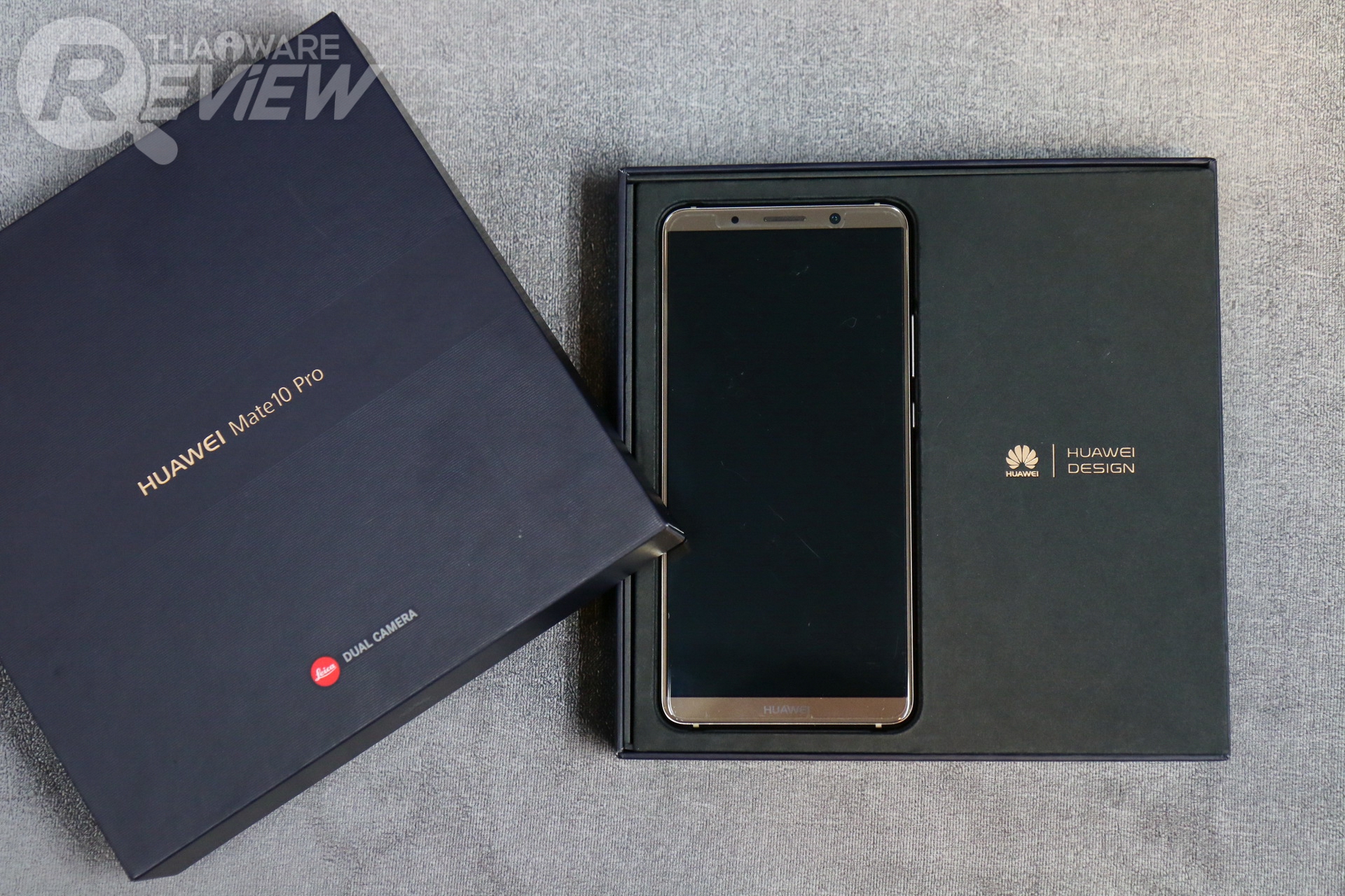 Huawei Mate 10 Pro มาในกล่องที่ออกแบบมาได้ดูหรูหราทีเดียว เปิดฝากล่องมาจะพบกับตัวเครื่องนอนอยู่เท่ๆ เมื่อยกออกมาก็จะเจอกับอุปกรณ์ต่างๆ ซ่อนอยู่ในกล่องอีกที ซึ่งมีการเก็บแยกอย่างเป็นระเบียบเรียบร้อนย ข้างในกล่องมีอุปกรณ์มาให้ครบครัน แม้แต่เคส เรียกได้ว่าแกะกล่องปุ้ป พร้อมใช้งานทันที อะแดปเตอร์ที่ให้มารองรับ SuperCharge ด้วย (ไม่แน่ใจว่าเครื่องที่ขายตามปกติให้เป็นอะแดปเตอร์รุ่นนี้หรือเปล่านะครับ)