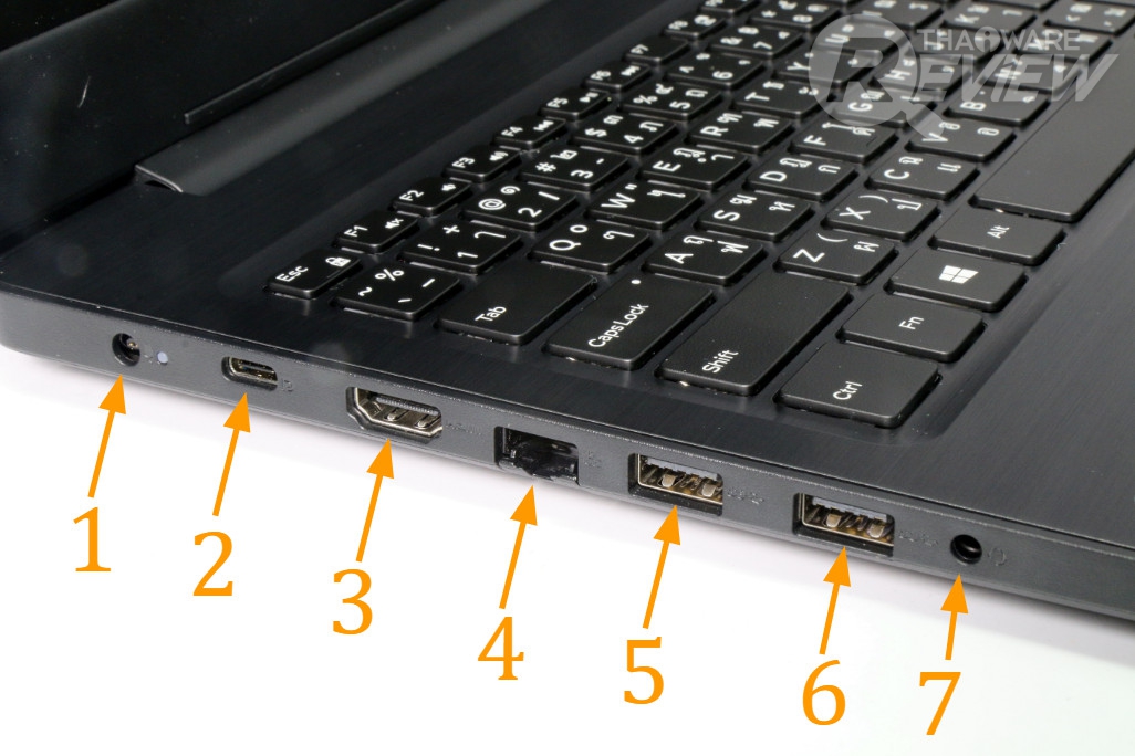 บนขอบขวาตัวเครื่องประกอบไปด้วยช่องพอร์ต