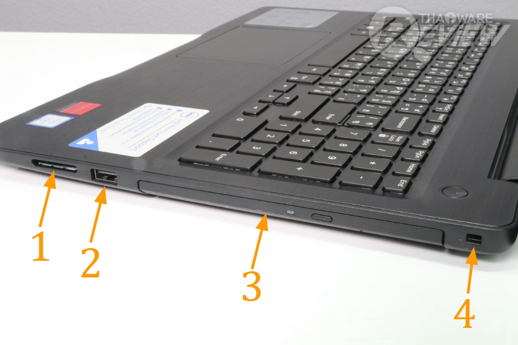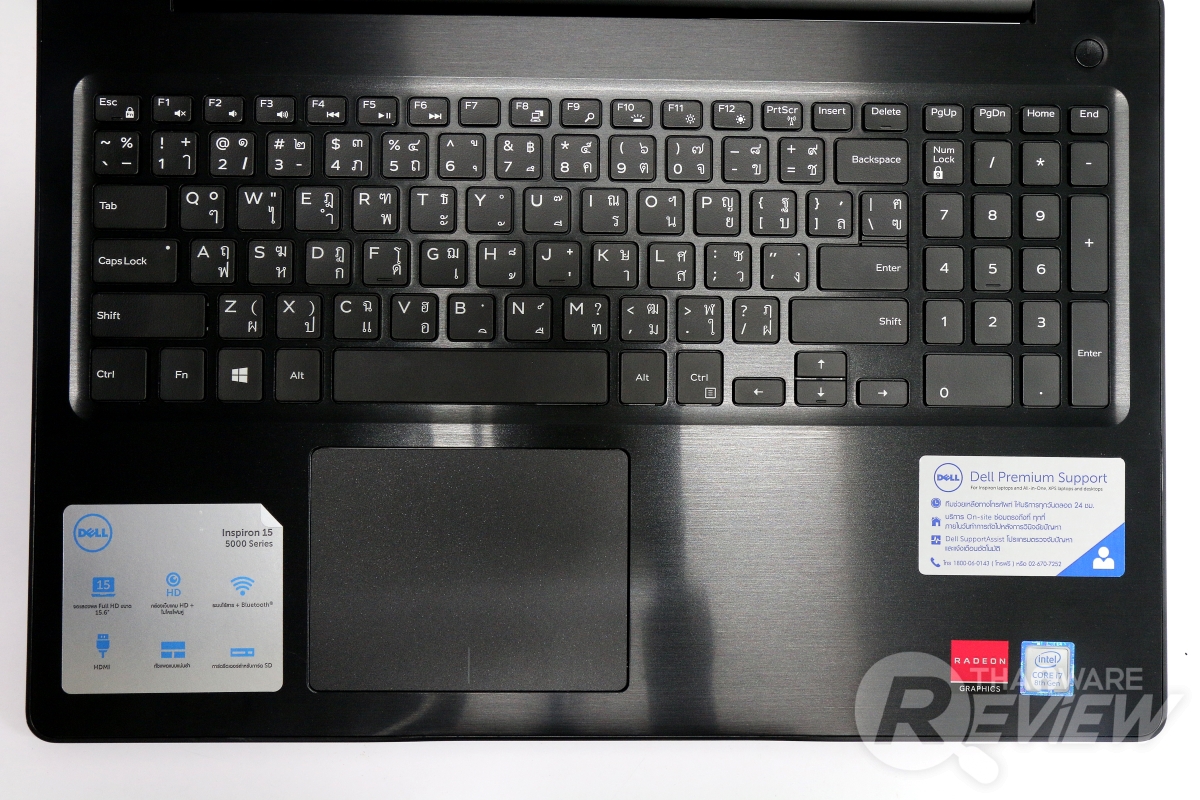 อีกสิ่งที่ชอบใน DELL Inspiron 15 5570 คือด้วยความที่ตัวเครื่องมีขนาดใหญ่ ทำให้สามารถใส่แป้นคีย์บอร์ดแบบ Full Size ลงไปได้ จากภาพด้านบน จะเห็นว่าทางฝั่งขวาของแป้นคีย์บอร์ด มีชุดปุ่มตัวเลขครบถ้วนเหมือนแป้นคีย์บอร์ดของเครื่องคอมพิวเตอร์ตั้งโต๊ะเลย ถ้าเป็นโน้ตบุ๊คจอ 14 หรือ 13 นิ้วก็จะไม่มีชุดปุ่มตัวเลขแยกออกมาต่างหากแบบนี้ ทำให้การพิมพ์เอกสาร หรือการคีย์ตัวเลขลงในตาราง Excel ทำได้สะดวกมากๆ เลย เมื่อมีแป้นคีย์แบบ Full Size ติดอยู่กับตัวเครื่องแบบนี้ ก็ไม่จำเป็นต้องเสาะหาแป้นคีย์บอร์ดมาเสียบใช้งานให้เปลืองเนื้อที่บนโต๊ะ