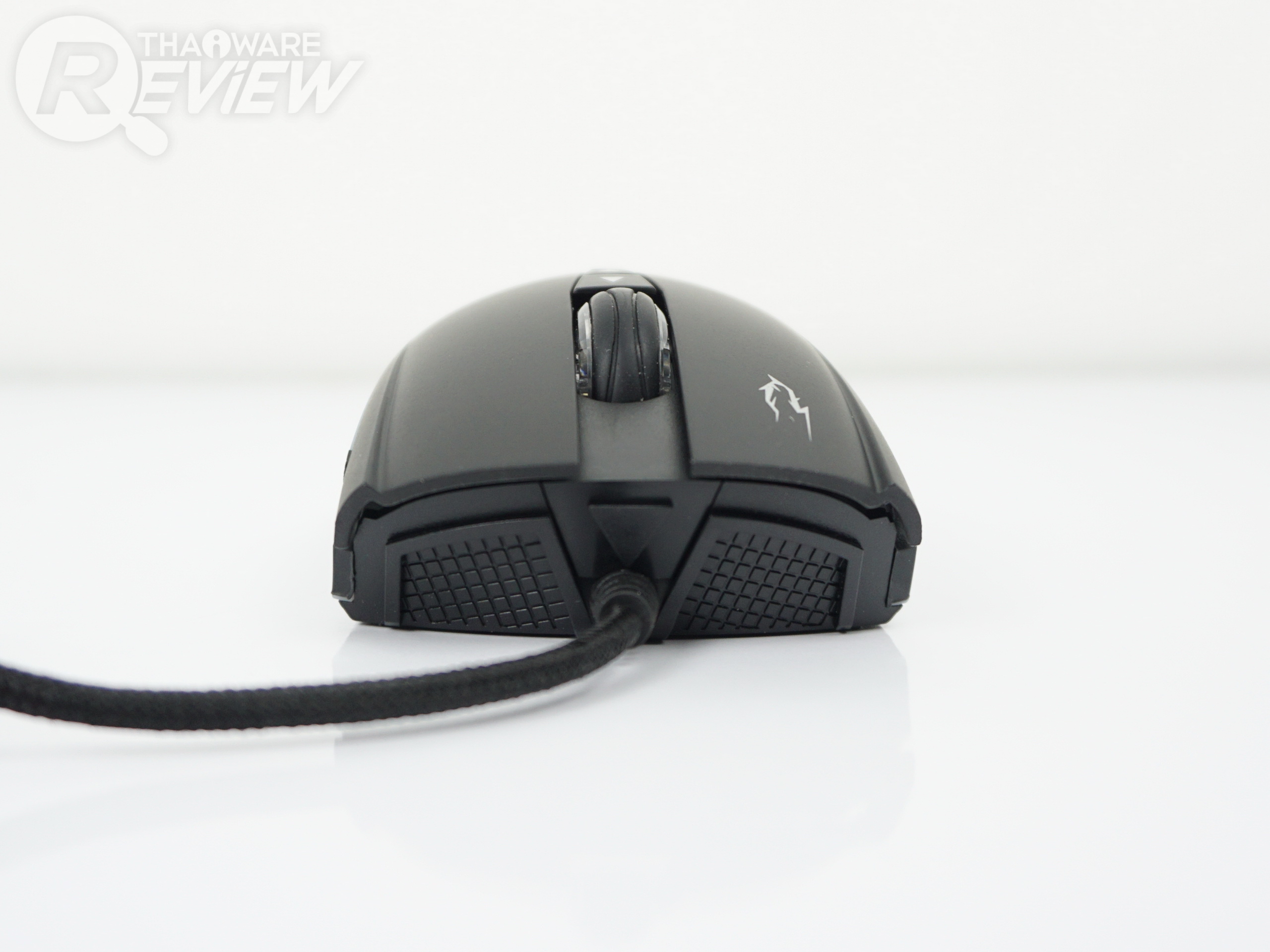 สังเกตว่าขอบด้านข้างของตัวเมาส์จะมีผิวขรุขระ ช่วยให้การการจับกระชับมือมากขึ้น ไม่ลื่นง่ายๆ