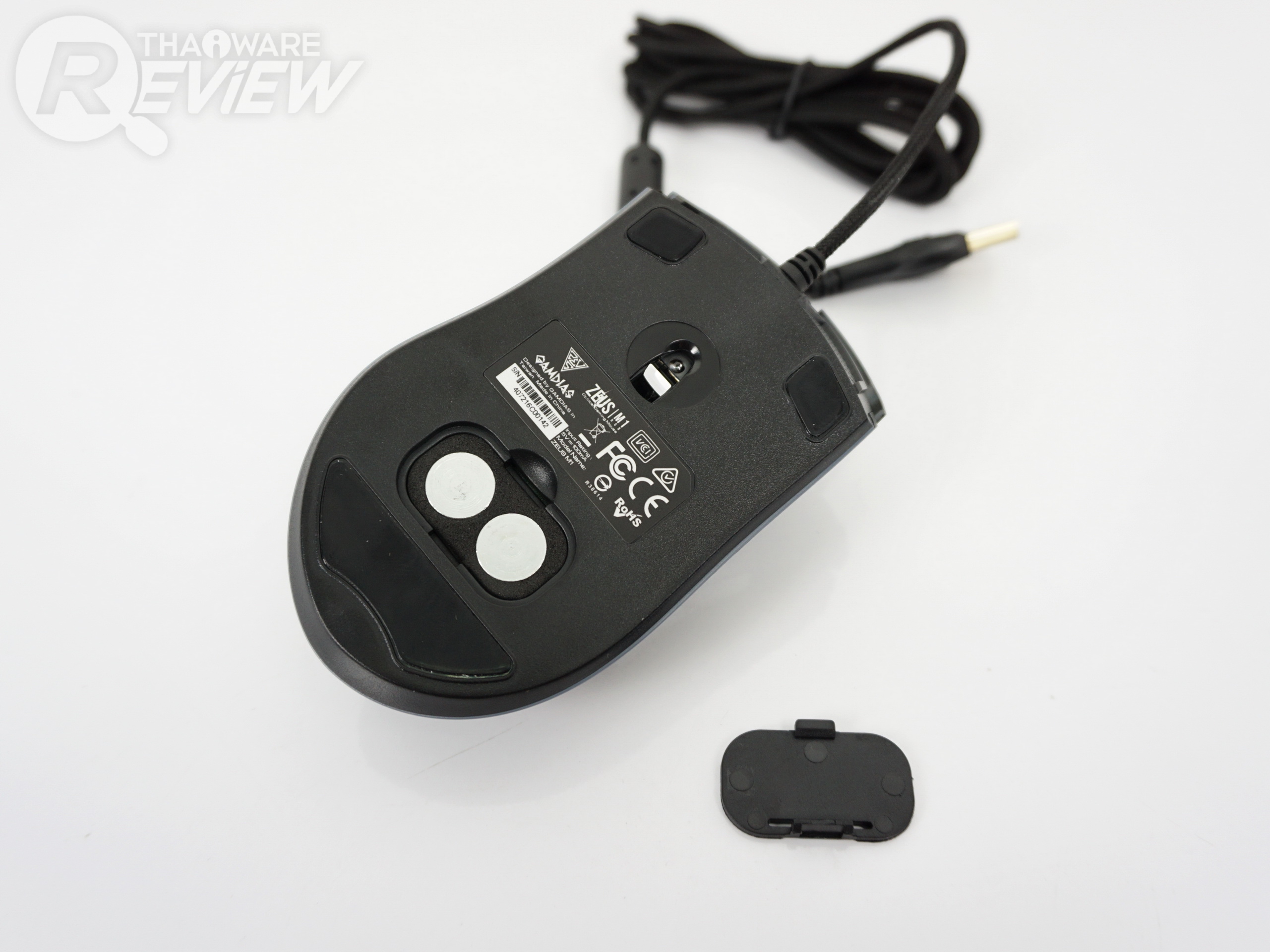 เมาส์รุ่นนี้สามารถปรับแต่งน้ำหนักได้ โดยด้านล่างของตัวเมาส์จะมีช่องสำหรับใส่โลหะเพื่อถ่วงน้ำหนักเมาส์ได้ 2 ช่อง