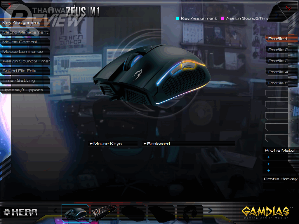 เมาส์ของ GAMDIAS จะใช้โปรแกรม HERA ในการตั้งค่านะครับ สามารถดาวน์โหลดได้ฟรีจากเว็บผู้ผลิตเลย หลักๆ ก็จะใช้ในการตั้งค่าปุ่มต่างๆ, ตั้งค่า MACRO และก็ตั้งค่าไฟครับ