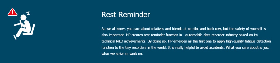 ฟีเจอร์ที่น่าสนใจของกล้องติดรถ HP f350 คือระบบ Driver Fatigue Alert ที่ทำหน้าที่ส่งเสียงแจ้งเตือนในขณะที่คนขับอาจเกิดอาการเหนื่อยล้าในขณะขับรถ (ซึ่งอาจเกิดขึ้นได้ในกรณีที่ขับรถทางตรงต่อเนื่องเป็นระยะทางไกลๆ) โดยหากกล้องพบว่ารถวิ่งในแนวตรงต่อเนื่องเป็นระยะเวลานานๆ โดยไม่มีการเลี้ยว หรือเปลี่ยนเลน กล้องก็จะส่งเสียงเตือนเพื่อให้เราไม่เกิดอาการหลับใน ก็นับว่าเป็นฟีเจอร์ที่มีประโยชน์ ของกล้องติดรถตัวนี้