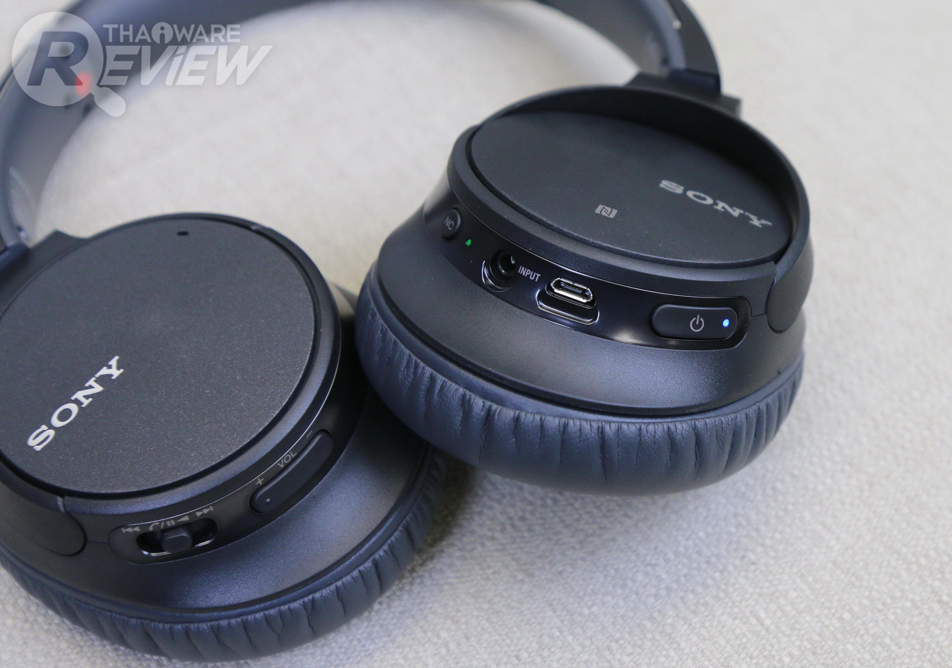 การควบคุมหูฟังมีปุ่มให้มาอย่างครบครัน ฝั่งหูซ้ายจะมีปุ่ม Power กับปุ่ม Noise cancelling ส่วนฝั่งขวาจะมีปุ่มเพิ่มลดเสียง และจอยสติ๊กที่ทำสองหน้าที่ คือ เลื่อนเพลงเดินหน้า/ถอยหลัง และกดลงไปได้เพื่อเริ่ม/หยุดเพลง (รวมถึงรับสาย) จากการทดสอบใช้งานของผม พบว่าเจ้าปุ่มจอยสติ๊กนี่เวลาจะกดเลื่อนเพลง มักจะเผลอดันลงไปกลายเป็นหยุดเพลงแทน