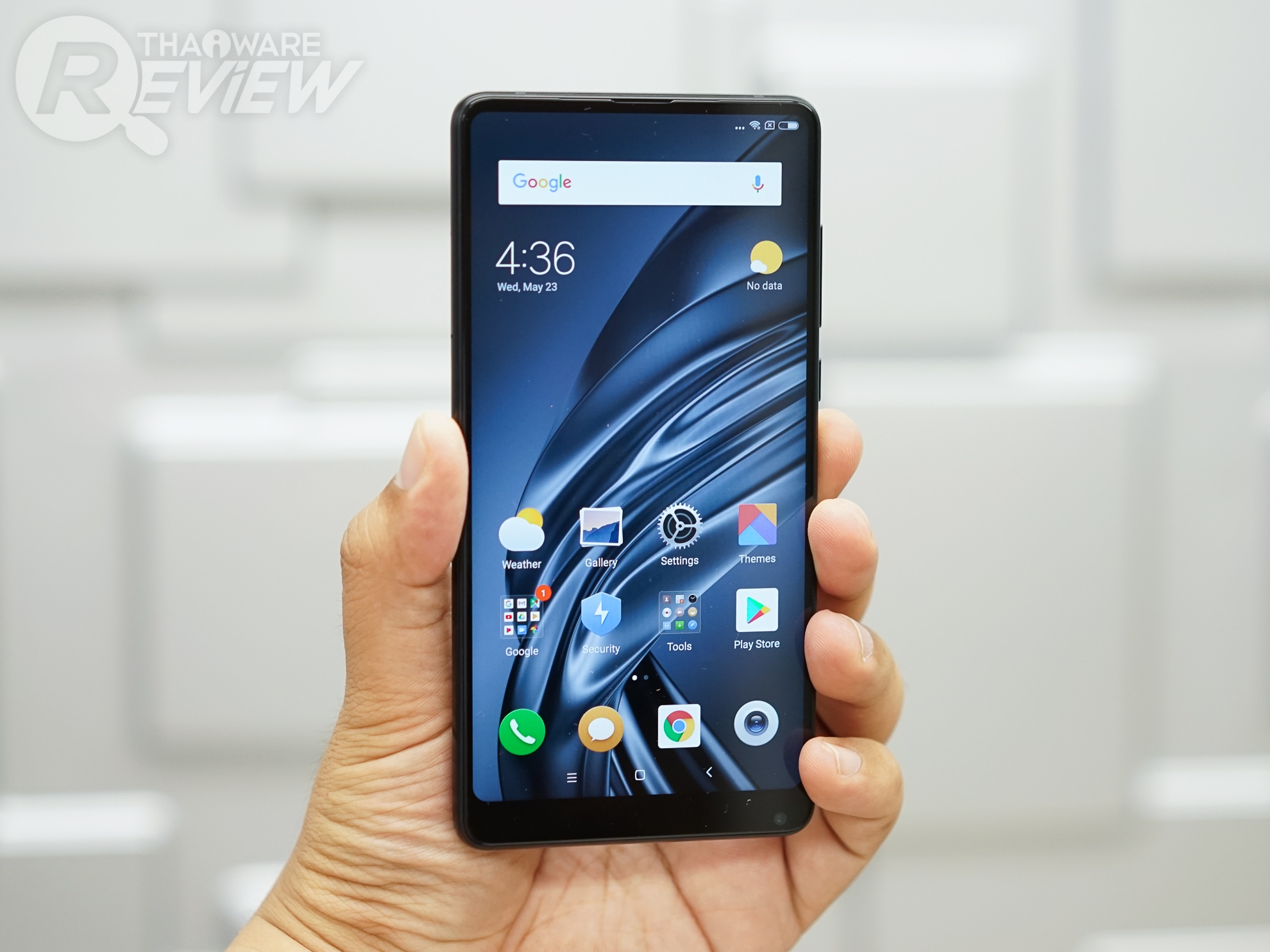 ด้านข้างของ Mi Mix 2S ได้ถูกเปลี่ยนมาเป็นอลูมิเนียม และกระจกด้านหน้าใช้ Gorilla Glass 4 แม้ว่าในภาพรวมเครื่องอาจจะดูไม่หรูเท่ารุ่นก่อน แต่เอาจริงๆ ผมชอบแบบนี้มากกว่านะ วัสดุใน Mi Mix 2S น่าจะทำให้โอกาสรอดเวลาทำเครื่องตกสูงกว่าเดิม