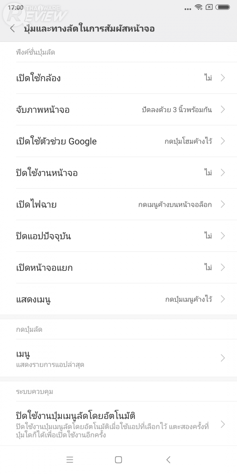 ตรงนี้เผื่อใครชอบปุ่มเมนูลัดให้กดบนหน้าจอ ก็เป็นทางเลือกให้เปิดมาใช้ได้ โดยปุ่มลัดนี้ เราจะสามารถใช้คำสั่ง Nav Key ได้ รวมทั้งแคปหน้าจอ และล็อกตัวเครื่องได้ด้วย เผื่ออยากจะถนอมปุ่มพาวเวอร์ให้ใช้ได้นานๆ นะครับ