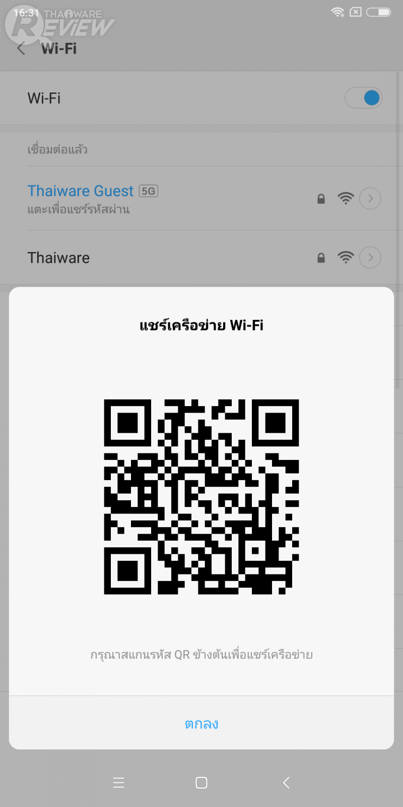 เป็นฟีเจอร์น่ารักๆ ของ MIUI อีกอันหนึ่ง เวลามีคนมาขอรหัส Wi-Fi เราก็ไม่จำเป็นต้องค่อยๆ บอกรหัสยากๆ ให้กับเขา แค่ไปที่หน้าเมนูเชื่อมต่อ Wi-Fi แล้วกด QR Code ให้คนอื่นสแกนเพื่อต่อ Wi-Fi ที่ใช้งานอยู่ได้ทันทีจ้า