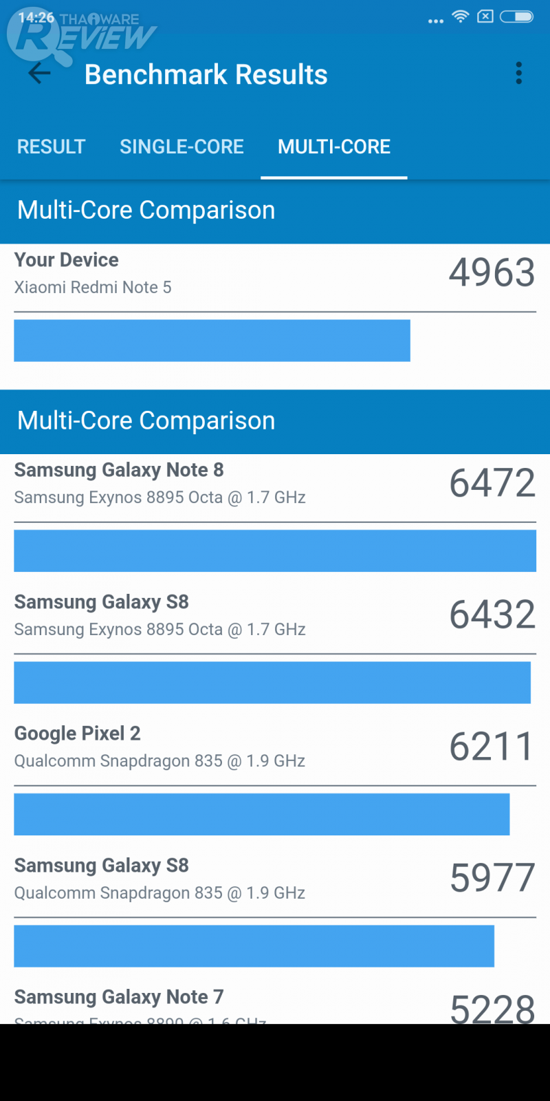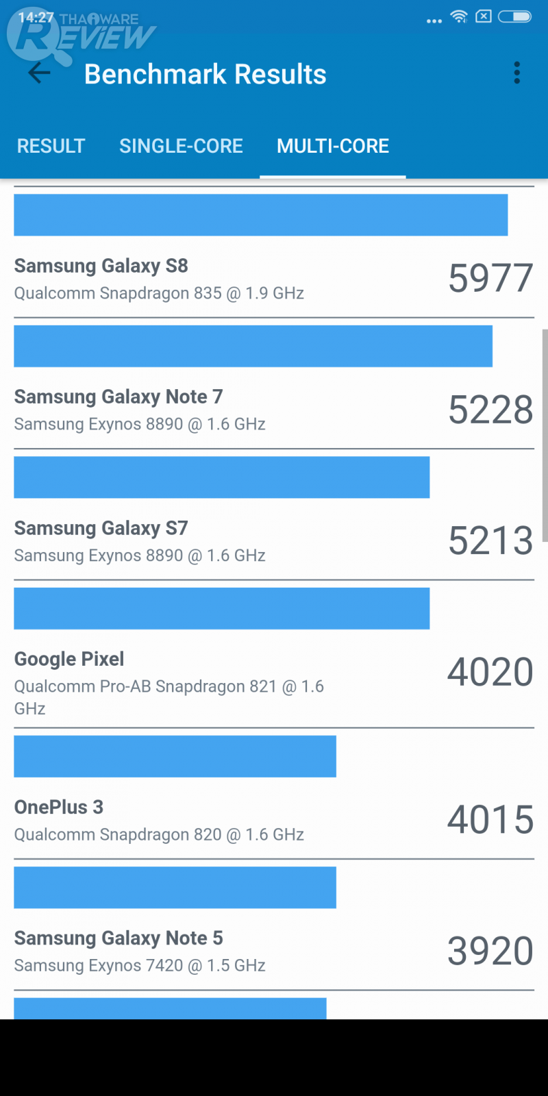 ทดสอบ Benchmark ดู พบว่าคะแนนของ Redmi Note 5 ได้เกือบเท่า Galaxy S7/Note 7 เลยทีเดียว