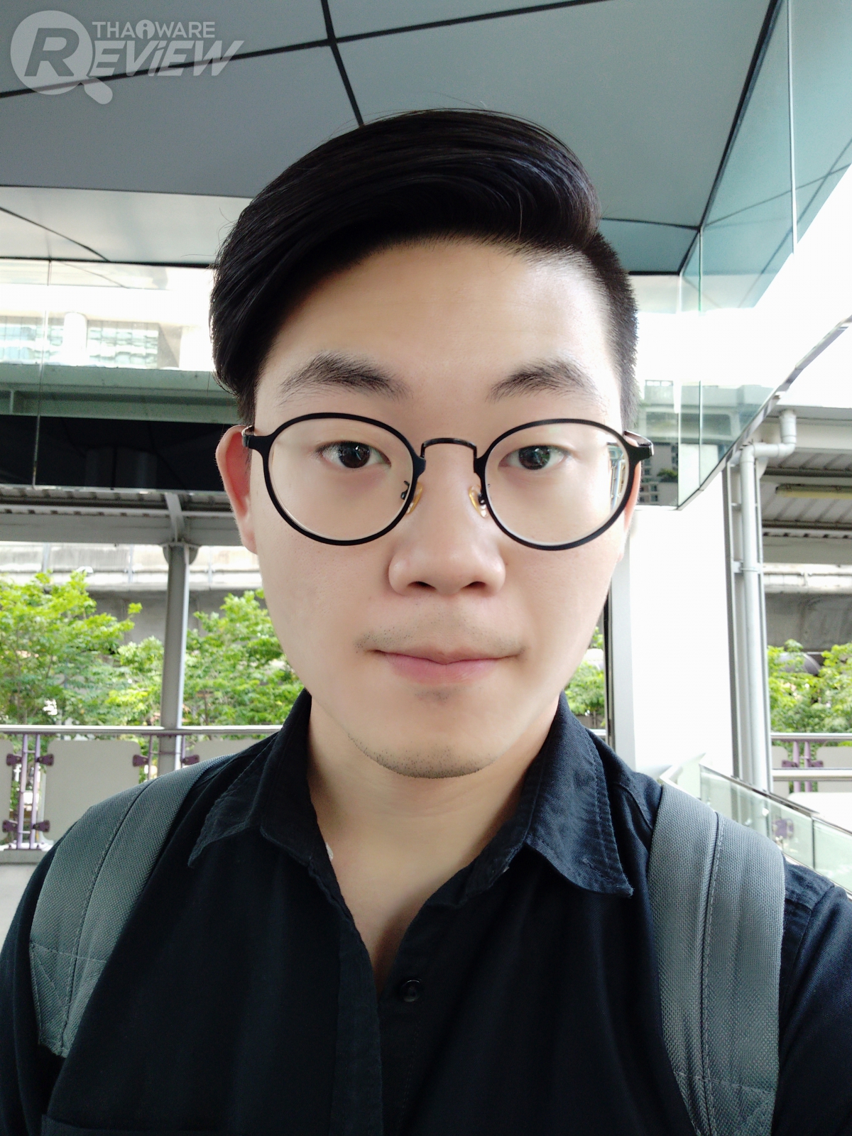 ลองเซลฟี่กล้องหน้าที่มีฟีเจอร์ Beautify 4.0 หรือฟีเจอร์ฟรุ้งฟริ้งของ Xiaomi หน้าดูใสเนียนกริ๊บ ส่วน Depth Effect ที่ให้ภาพแบบหน้าชัดหลังเบลอ (ในรูปขวา) ก็ตัดขอบภาพได้เนียนดี หลังละลายในขณะที่เส้นผมหรือขอบหูยังคมชัดอยู่