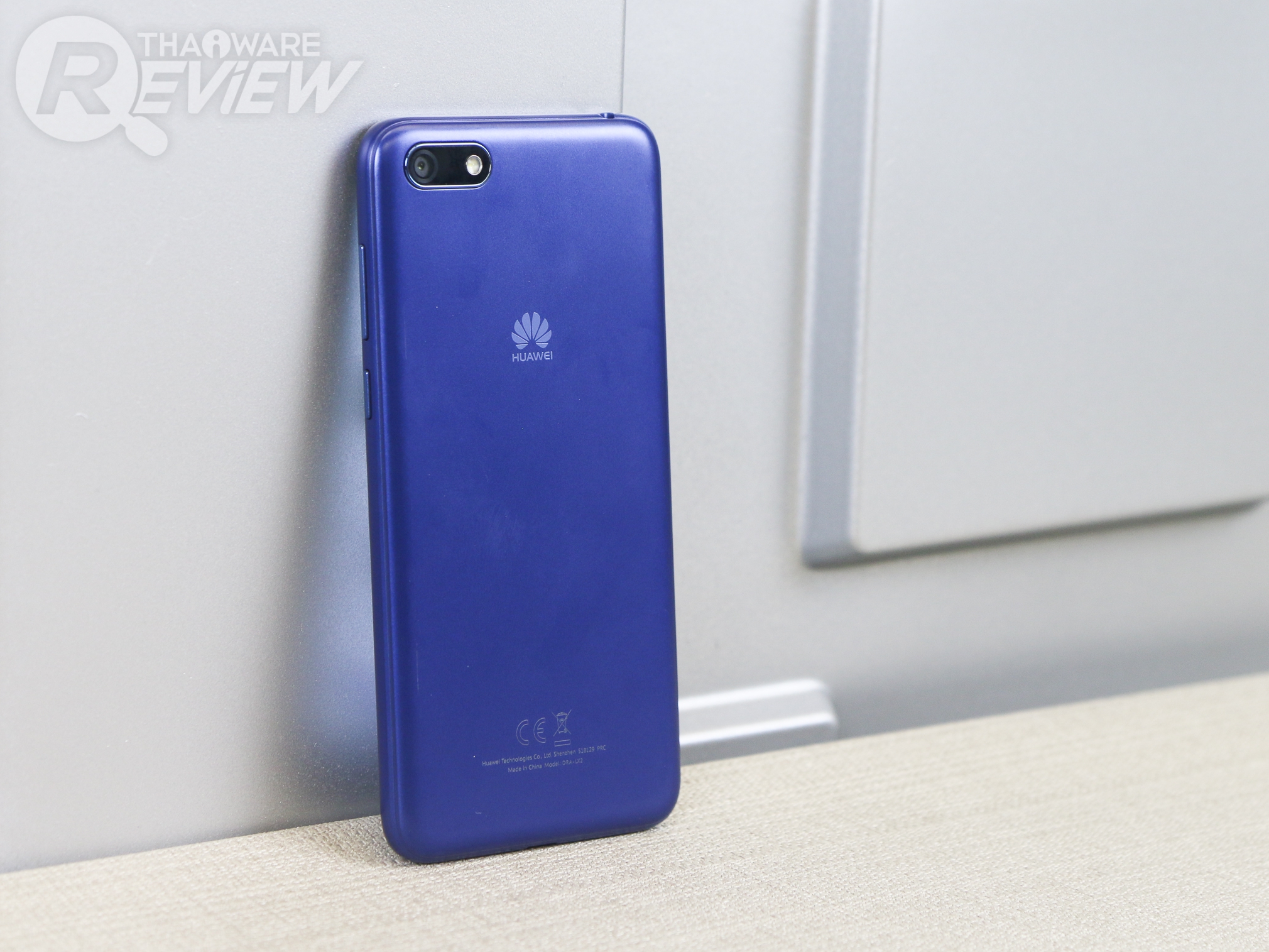 ด้านหลังออกแบบมาได้เจ้าเล่ห์ดี มองผ่านๆ นึกว่ามีกล้องคู่ แต่ที่จริงมีกล้องแค่ตัวเดียวนะครับ เอาแฟลช LED มาวางซะเนียนเลย ตรงกลางมีโลโก้ Huawei รุ่นนี้ไม่มีเซ็นเซอร์สแกนลายนิ้วมือนะครับ ต้องอย่าลืมว่านี่เป็นรุ่นประหยัด ค่าตัวแสนถูก