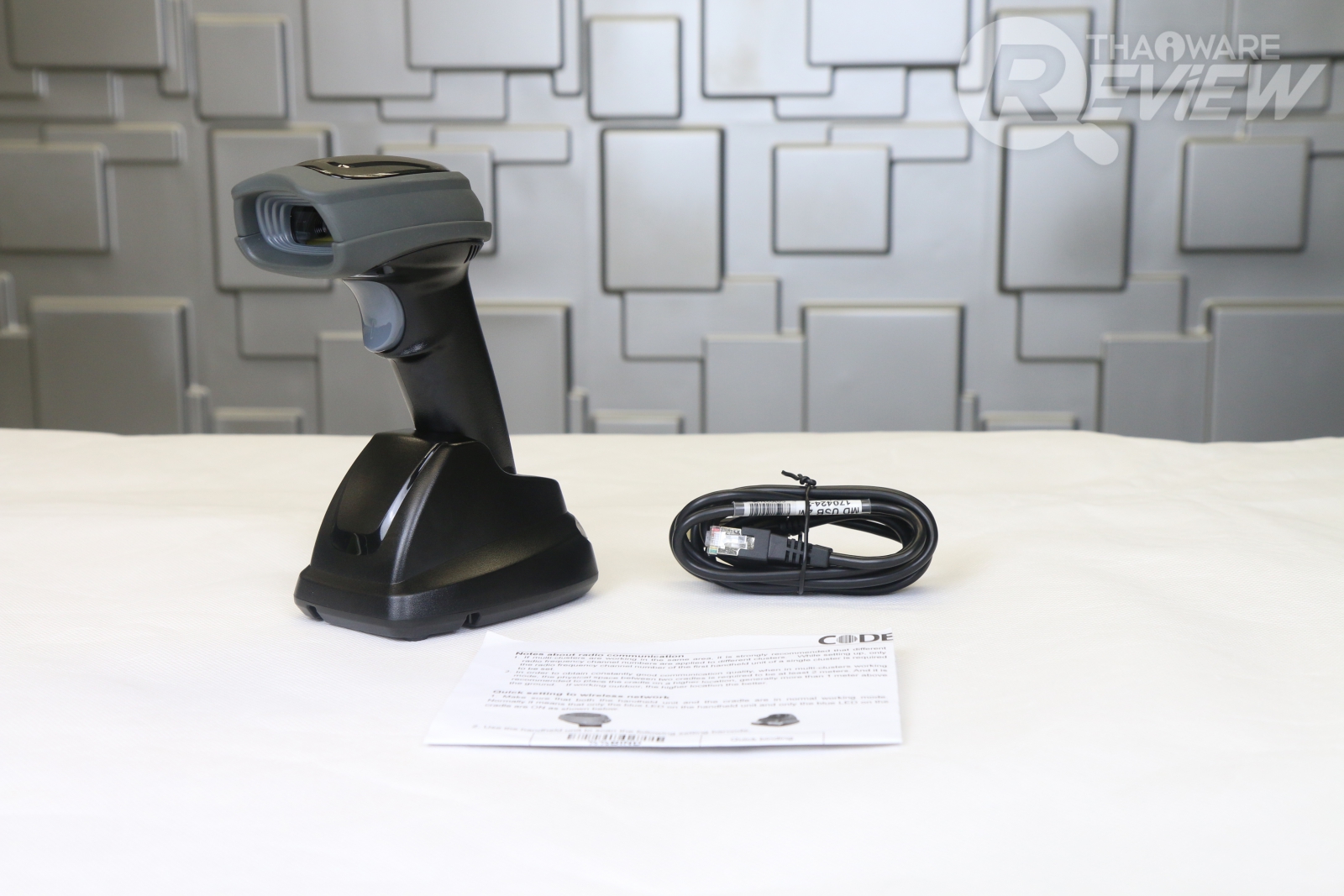 อุปกรณ์ทั้งหมดมีดังนี้ เครื่องอ่านบาร์โค้ด, แท่นเสียบ, สายเชื่อมต่อ, คู่มือ อาจจะเห็นว่ามันน้อยมาก แต่ทั้งหมดนี้ก็เพียงพอต่อการใช้งานแล้ว