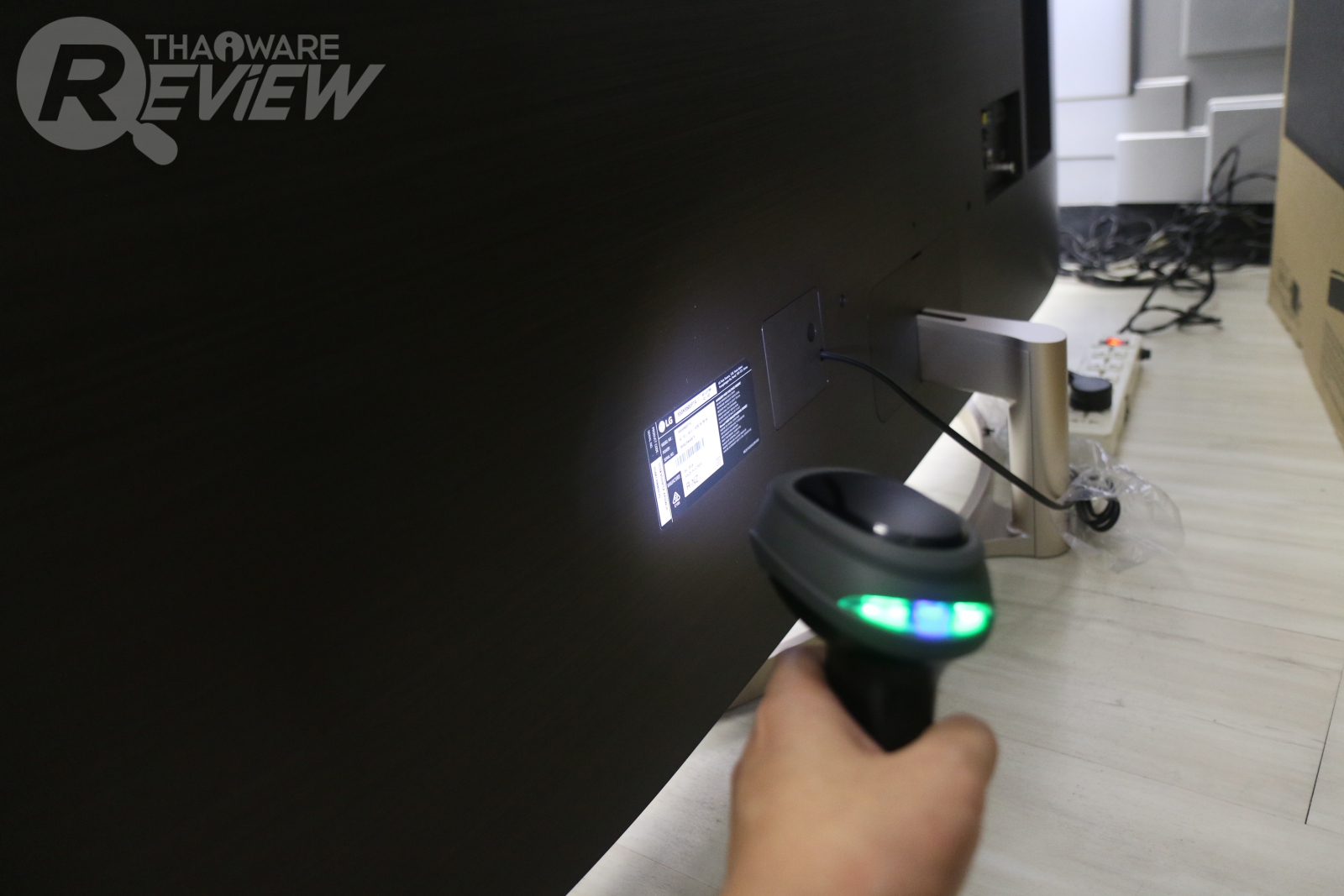 ภาพถ่ายขณะสแกนบาร์โค้ด บนทีวีหน้าจอใหญ่ ขนาด 62 นิ้ว