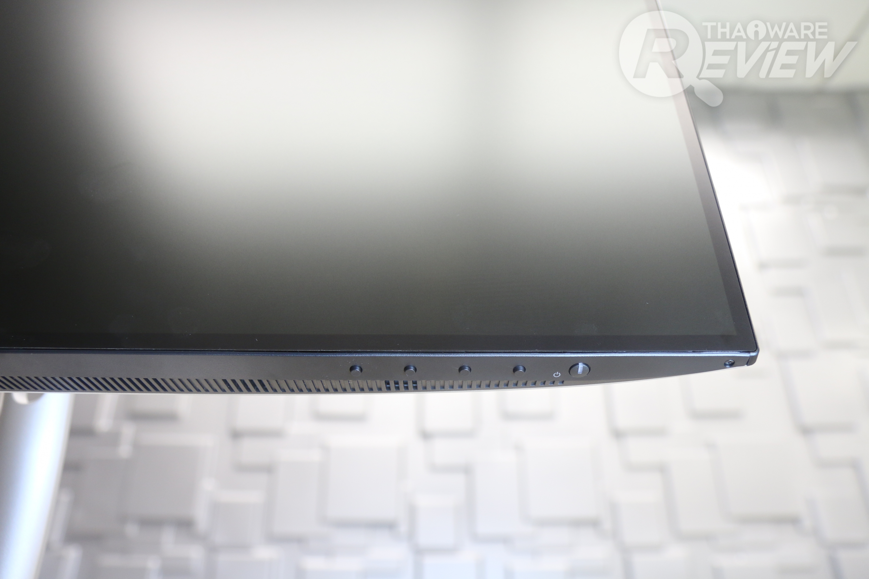 ส่วนปุ่มเปิด-ปิด, ปุ่มตั้งค่ามี 5 ปุ่ม อยู่ฝั่งขวาใต้จอ มีขนาดค่อนข้างเล็ก ดูไม่สะดุดตา เวลากดต้องเอามือคลำๆ ดูถึงจะเจอ