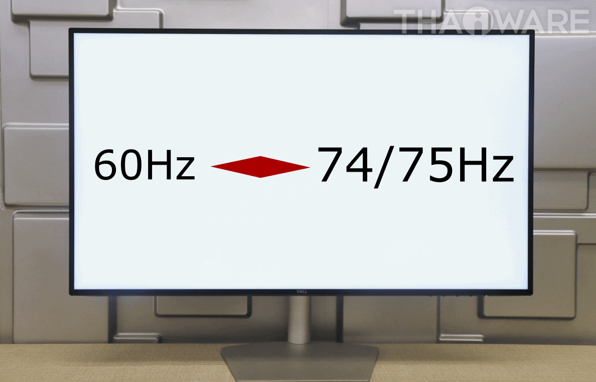 สำหรับการเล่นเกมส์ ค่ารีเฟรชเรทของหน้าจอเป็นเรื่องที่ค่อนข้างสำคัญเลยทีเดียว ตามสเปกเจ้าจอ Dell S2719DM มีค่ารีเฟรชเรทอยู่ที่ 60Hz ซึ่งเทียบเท่ากับจอใช้งานทั่วๆ ไป แต่มีผู้รีวิวท่านหนึ่งจากเว็บต่างประเทศได้ระบุไว้ว่าเราสามารถ "ปลดล็อกค่ารีเฟรชเรทจาก 60Hz เพิ่มเป็น 74/75Hz ได้" โดยมีข้อจำกัดที่ว่า ต้องเปิดใช้งานเทคโนโลยี G-Sync (Nvidia) หรือ FreeSync (AMD) และตัวการ์ดจอต้องแรงพอที่จะดันค่า FPS ให้เท่ากับค่ารีเฟรชของหน้าจอด้วย
