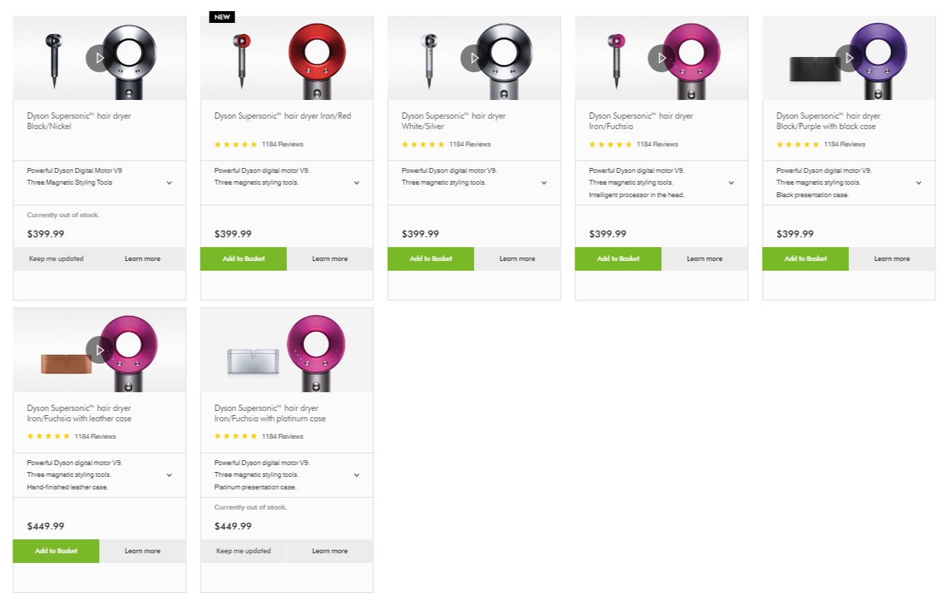 Dyson Supersonic มีหลายสี หลายออปชั่นให้เลือกซื้อ