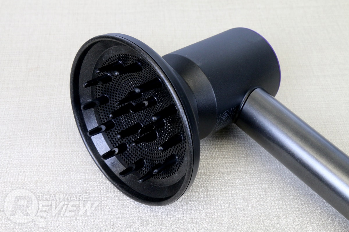 และชิ้นสุดท้ายเป็น หัวต่อแบบกระจายลม ทำหน้าที่กระจายลมออกเป็นบริเวณกว้าง ถนอมเส้นผมไม่ให้โดนความร้อนมากเกินไป และเหมาะกับสาวที่ทำทรงผมดัดลอน
