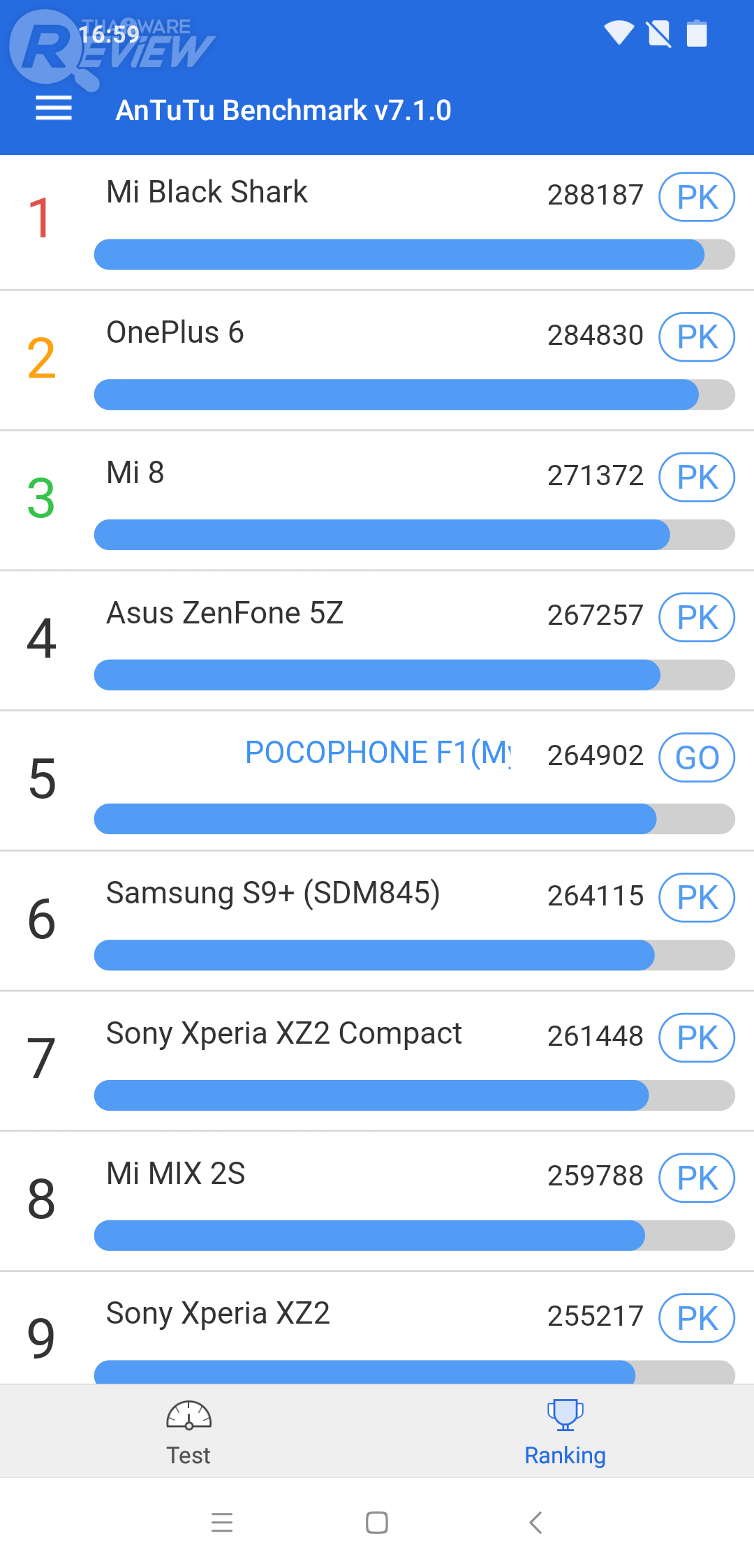 เราทดสอบด้วย AnTuTu Benchmark ทำคะแนนได้ถึง 264,902 สูสีกับเรือธงของหลายๆ ค่าย ก็ไม่น่าแปลกใจ ด้วยขุมพลังของ Snapdragon 845 และแรมที่ใหญ่ถึง 6GB