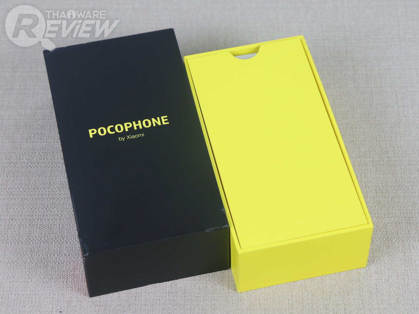 ในส่วนของแพ็คเกจ POCOPHONE F1 มาในกล่องที่ค่อนข้างธรรมดา ไม่ได้มีดีไซน์หวือหวาอะไร ซึ่งจุดนี้ก็เข้าใจได้ไม่ยากนะครับ เพราะใส่สเปกเครื่องมาในราคานี้ก็ต้องหาทางลดต้นทุนในส่วนอื่นแทนล่ะเนาะ ที่มันจะมาในแบบมินิมอล