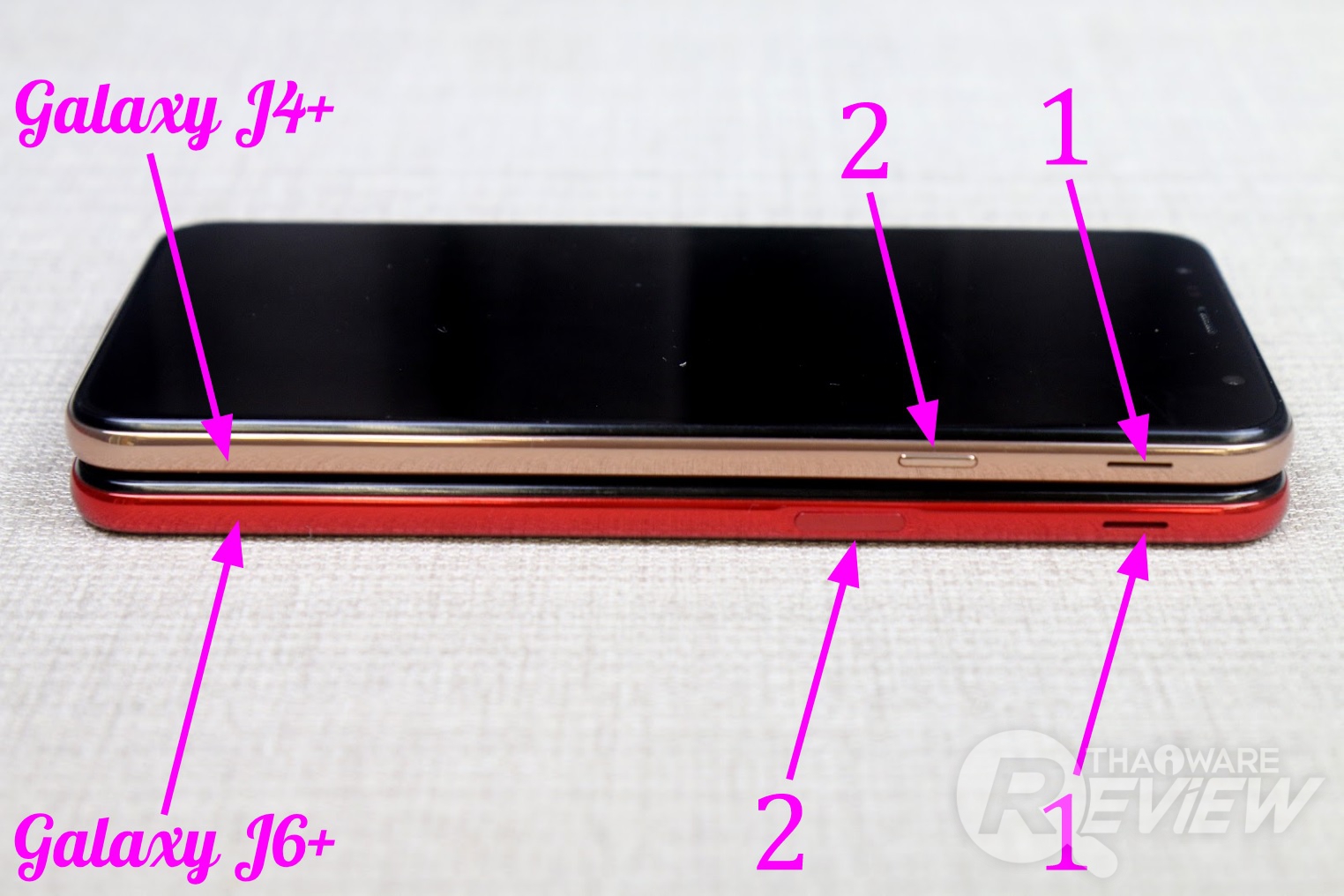 ต้องบอกว่าทีมออกแบบของ Samsung เก่งมาก สมาร์ทโฟนราคาต่ำหมื่นของบางแบรนด์อาจดูดีไซน์ไม่สวยงาม หรือบางทีอาจถึงขั้นดูเชยๆ ซึ่งตรงข้ามกับ J6+ และ J4+ ที่ในระหว่างการรีวิว มีคนในออฟฟิศขอหยิบตัวเครื่องไปดู พอได้เห็นความงามแวววาวของแผ่นหลัง ก็คิดกันไปไกลว่าราคาต้องหมื่นอัพอย่างแน่นอน แต่พอได้รู้ราคาเท่านั้นแหละถึงกับแปลกใจว่ามือถือราคาไม่แรง (โดยเฉพาะรุ่น J4+ ที่ราคาต่ำกว่า 5,000 บาท) ดีไซน์และรูปลักษณ์ของตัวเครื่องมันดูดีแบบนี้เลยเหรอ ถ้าจะพูดว่า ทั้ง J6+ และ J4+ มีรูปลักษณ์ที่ดูดีเกินราคาค่าตัวไปไกล ก็คงไม่เกินเลยความจริงแต่อย่างใด ความแวววาวของแผ่นหลังดูดีมีรสนิยม ไม่ได้แวววาวจนดู Fake เหมือนมือถือบางรุ่น ต้องบอกว่าใครที่ไม่อยากจ่ายแพง แต่อยากได้มือถือที่ดูดี หยิบขึ้นมาเล่นได้แบบไม่อายเพื่อน ทั้ง J6+ และ J4+ ตอบโจทย์ได้เป็นอย่างดี (แต่ทั้งนี้ทั้งนั้นเรื่องความสวยความงามขึ้นอยู่กับรสนิยมของแต่ละบุคคล แต่ก็เชื่อว่าแผ่นหลังของ J6+ และ J4+ ไม่น่าจะทำให้ผิดหวังอย่างแน่นอน)