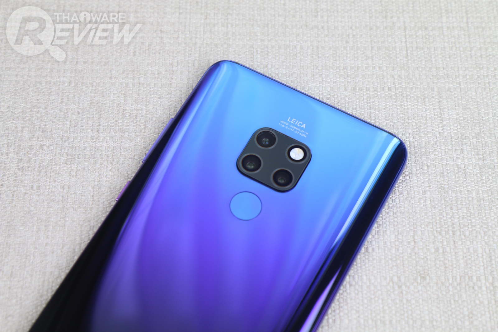 เลนส์กล้องหลัง 3 เลนส์ ดีไซน์แบบไฟหน้ารถ Porsche เป็นอะไรที่เด่นมากๆ ในตอนนี้ ถือไปไหนก็รู้เลยว่าเป็น Huawei Mate 20 Series แน่นอน และสำหรับรุ่นนี้ มีเซ็นเซอร์สแกนนิ้วอยู่ด้านหลังของตัวเครื่อง เท่ากับว่าไม่มีการสแกนนิ้วบนหน้าจอให้ได้ใช้งานกันจ้า