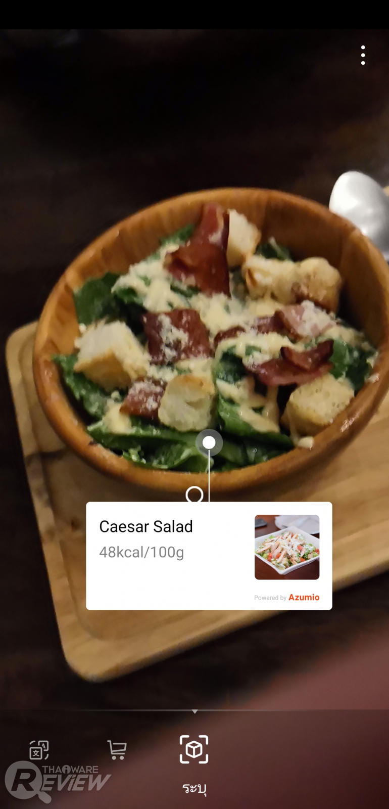 สุดท้ายเป็นการคำนวณแคลอรี่อาหาร ซึ่งกล้องก็รู้จักอาหารเยอะเหมือนกันนะ แยกระหว่างก๋วยเตี๋ยวเนื้อกับก๋วยเตี๋ยวหมูตุ๋นออกด้วย หรือก๋วยเตี๋ยวต้มยำก็รู้จัก คิดว่าไม่น่ามีปัญหาสำหรับสายสุขภาพที่จะคำนวณแคลอรี่อยู่แล้ว เพราะคงไม่มีอาหารแปลกๆ มาทำให้กล้องเอ๋อซักเท่าไหร่