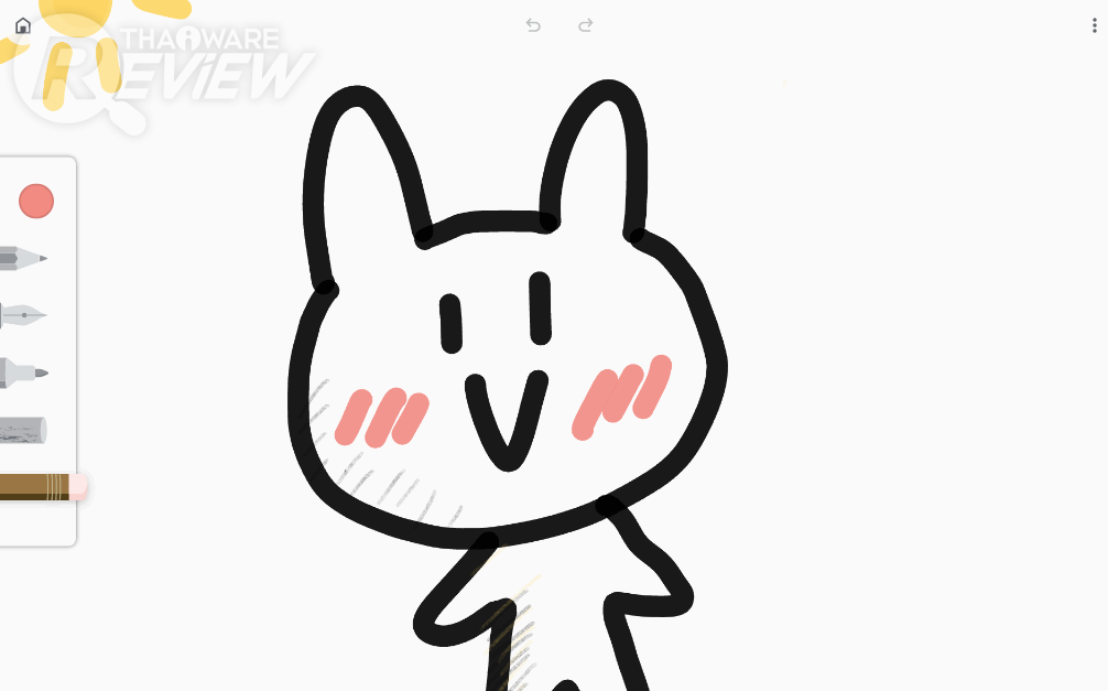 เครื่องมือมีไม่เยอะ แต่ก็น่าจะเยอะพอสำหรับการวาด Doodles นะ สามารถปรับขนาดของหัวปากกา และความทึบได้ตามความต้องการนะ ตัว User Interface ก็จะคล้ายๆ กับพวกแอปวาดรูป Adobe Draw หรือ Procreate นะ เรียนรู้ง่ายมาก