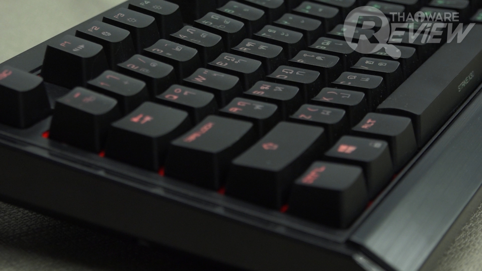 Ozone Strike X30 เป็นคีย์บอร์ด Mechanical ที่มีหน้าตาและดีไซน์ดูดีไม่แพ้แบรนด์ใดเลยทีเดียว บอดี้ของตัวคีย์บอร์ดใช้อลูมิเนียมเป็นวัสดุหลัก ส่วนปุ่มคีย์บอร์ดหรือที่เรานิยมเรียกกันว่าคีย์แคปนั้นเป็นแบบไฟลอดจากด้านบนของสวิทช์ ซึ่งใช้ Blue Switch ของ Kailh (เคลห์) ให้เสียงกดที่หนักแน่นเสียงดังฟังชัด