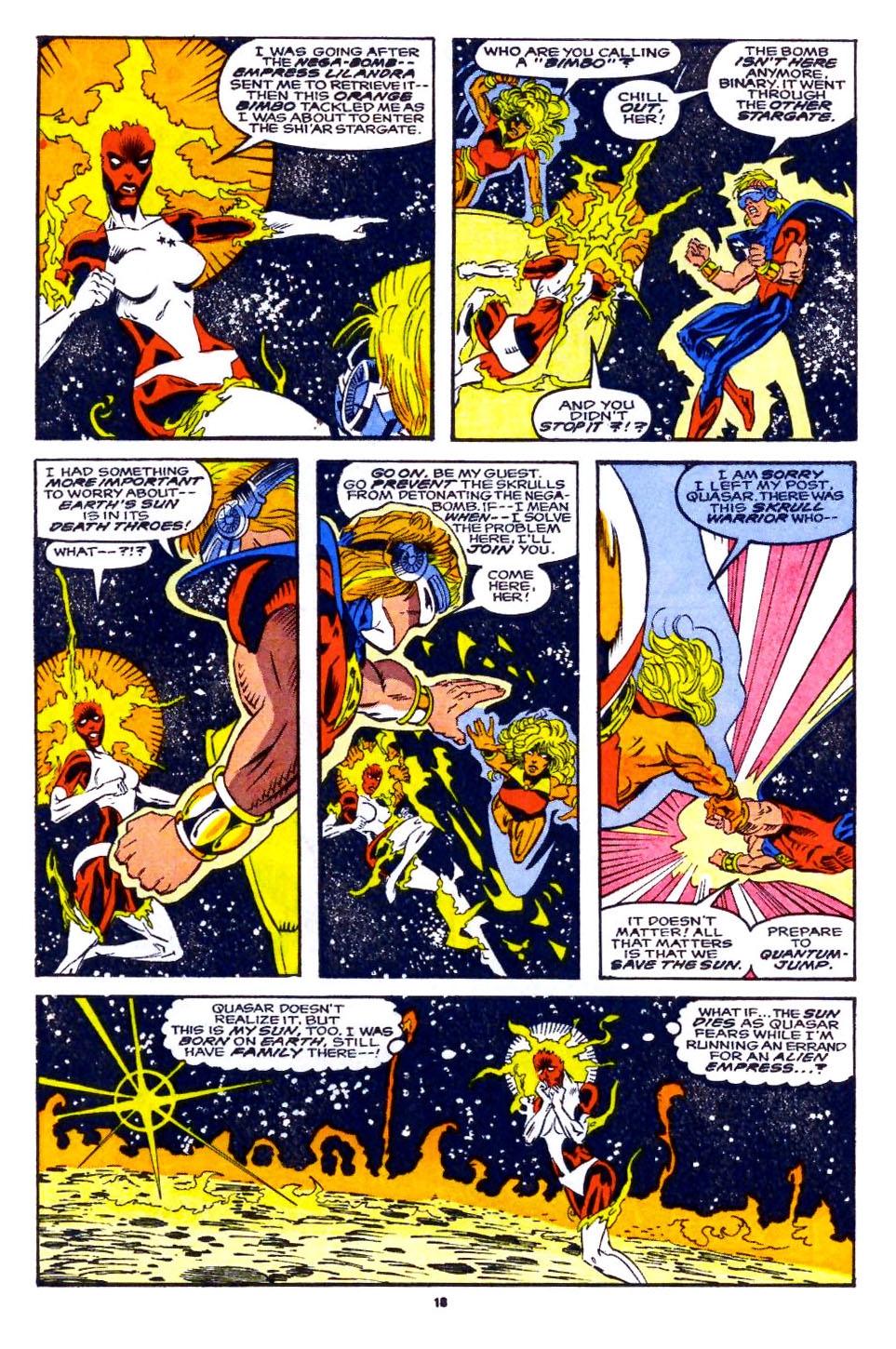 เธอท่องอวกาศนานอยู่หลายปี ก่อนจะเสียพลังไปกับการช่วยลดความร้อนจากดวงอาทิตย์ที่กระทบต่อโลกลง เธอได้มาพักฟื้นที่ Avengers Mansion จนเธอได้พลังกลับมาและขนานนามตัวเองว่า Warbird แต่เธอก็มีปัญหาทางด้านอารมณ์ ติดเหล้าอีกต่างหาก จนในที่สุดเธอก็ได้ออกจาก Avengers ไป