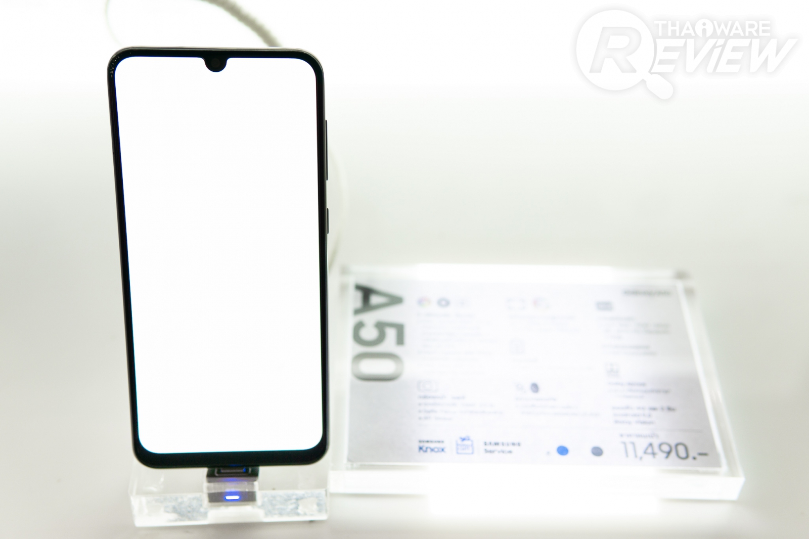 นอกจากนั้นแล้ว เซ็นเซอร์สแกนลายนิ้วมือบนหน้าจอ ถือเป็นอีกหนึ่งจุดเด่น อีกอย่างของ Samsung Galaxy A50 ด้วยนะ นั่นก็เพราะ มันเป็นรุ่นแรกในตระกูล A-Series ที่เอานิ้วแตะจอปุ๊บก็ปลดล็อกหน้าจอปั๊บ (เซ็นเซอร์ไม่ใช่แบบคลื่นเสียง Ultrasonic เหมือนกับ S10 นะ)