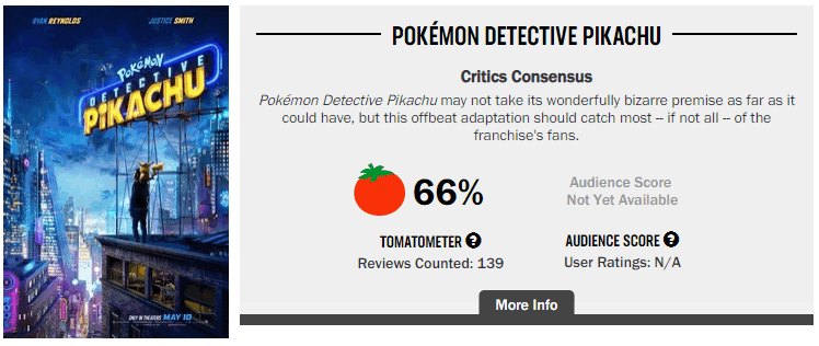 Pokémon Detective Pikachu ถือเป็นหนัง Live-Action เรื่องแรกของ Pokémon เลยก็ว่าได้ แถมมันยังส่อแววดีและน่าสนใจตั้งแต่วันปล่อยตัวอย่างแรกใน Youtube ได้ยอดไลค์ถึง 1 ล้านภายใน 24 ชม. (ณ ตอนนี้ 1.4 ล้านเข้าไปแล้ว) แถมยังได้รับคะแนนวิจารณ์ไปในแง่บวก ได้ 7.3/10 จาก IMDb และได้ 66% จาก Rotten Tomatoes (10/5/2019) ถือว่าไม่เลวเลย ไม่แน่ว่ามันอาจจะเป็นหนังที่ทำออกมาจากเกมที่ดีที่สุดตั้งแต่มีมาเลยก็เป็นได้ ซึ่งถ้ามันทำรายได้ดี เสียงวิจารณ์ดี ประสบความสำเร็จ จักรวาล Pokemon มาแน่! ไปพิสูจน์กันด้วยตาตัวเอง ร่วมไขปริศนา ไล่ล่าเบาะแส และผจญภัยไปกับยอดนักสืบ Pikachu ได้ใน Pokémon Detective Pikachu - โปเกม่อน ยอดนักสืบพิคาชู