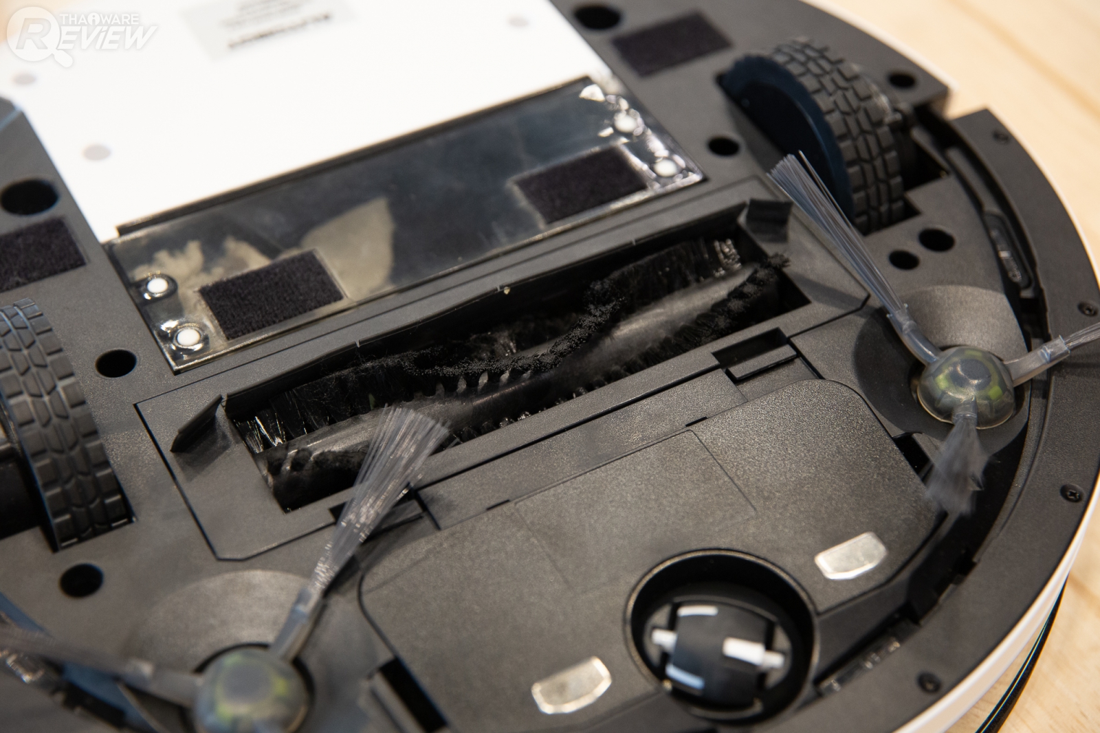 ตรงกลางเป็นช่องดูดฝุ่นพร้อมกับแปรงกวาดฝุ่น ที่ทำงานร่วมกับระบบลมดูดฝุ่นที่มีความแรง 1,200PA ที่ดูดฝุ่นชิ้นใหญ่ๆ อย่างทิชชู่