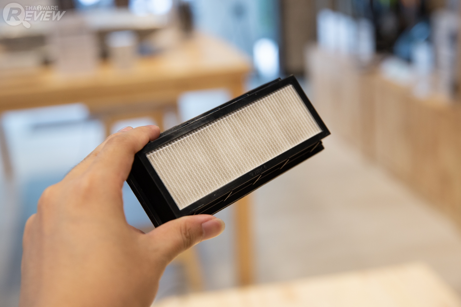การถอดแยกส่วนฟิลเตอร์ก็ทำได้ง่ายมาก แค่ดึงออกมาได้เลย ตัวฟิลเตอร์ก็ถอดออกมาเคาะฝุ่นทิ้งได้ แต่ห้ามเอาไปล้างน้ำ เพราะจะทำให้ฟิลเตอร์เสื่อม