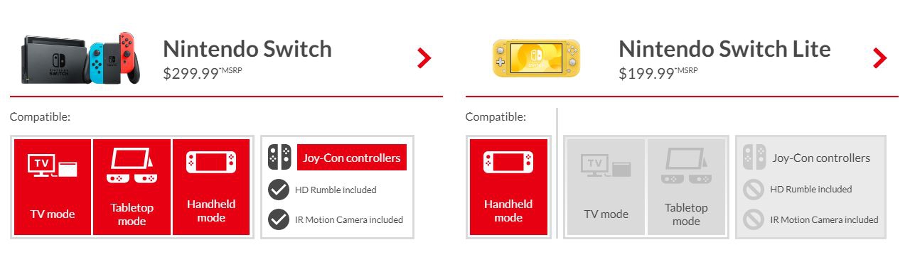 | Nintendo Switch | Nintendo Switch Lite |