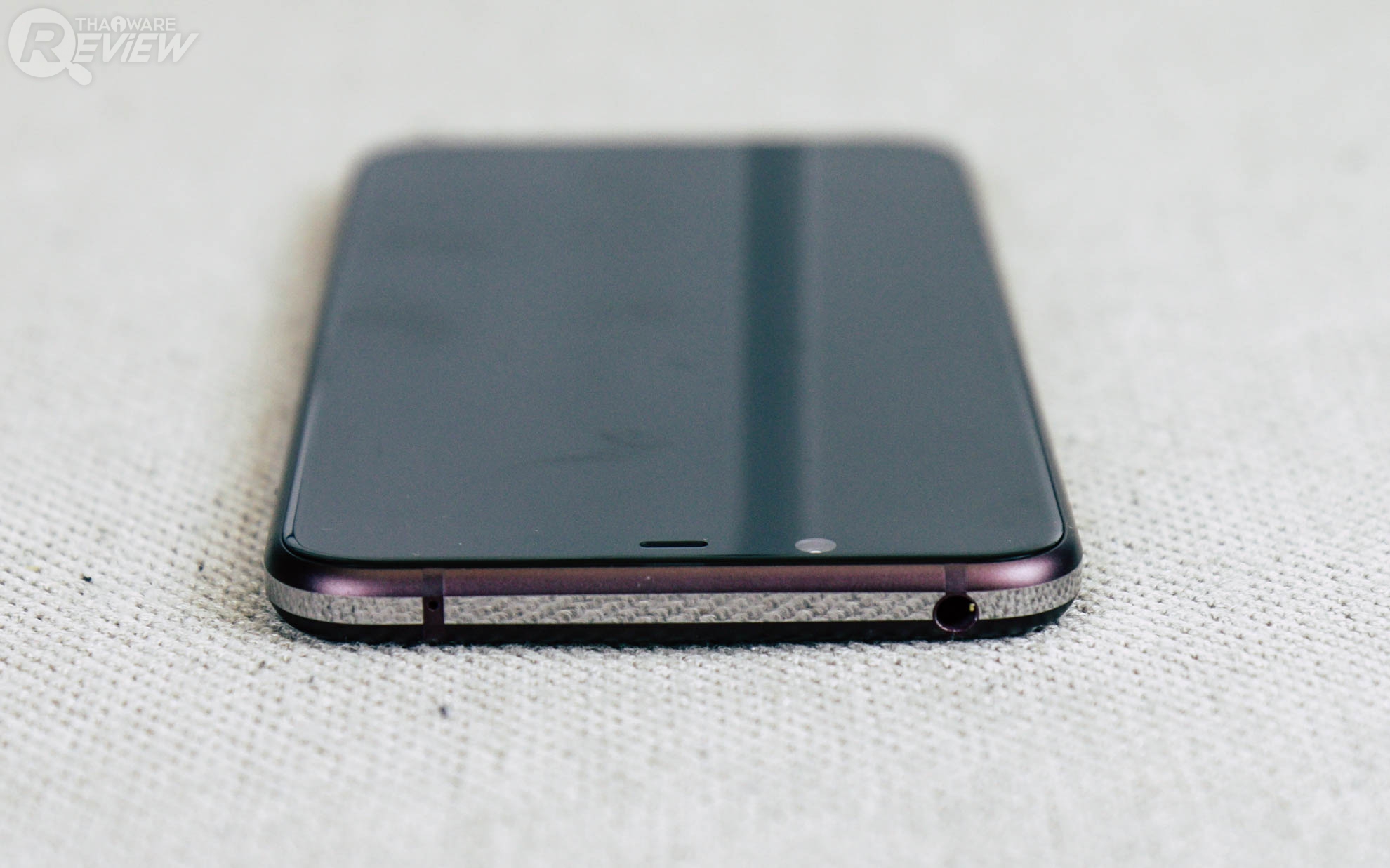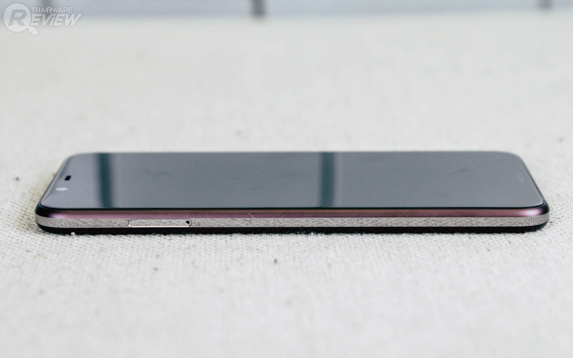 ฝาหลังกระจกให้ความหรูหรา เหมือนกับกำลังถือสมาร์ทโฟนระดับเรือธงเลยล่ะ ด้านหลังดีไวน์มาได้เรียบง่าย ให้ความรู้สึกที่ไม่มาก ไม่น้อยจนเกินไป ตัวเครื่องไม่ใช่สีดำนะ จริงๆ เครื่องที่ผมได้มาจะเป็นสีม่วงเข้มมาก เวลาส่องเล่นกับไฟจะเห็นเป็นสีม่วงมังคุดสวยแปลกตาดี
