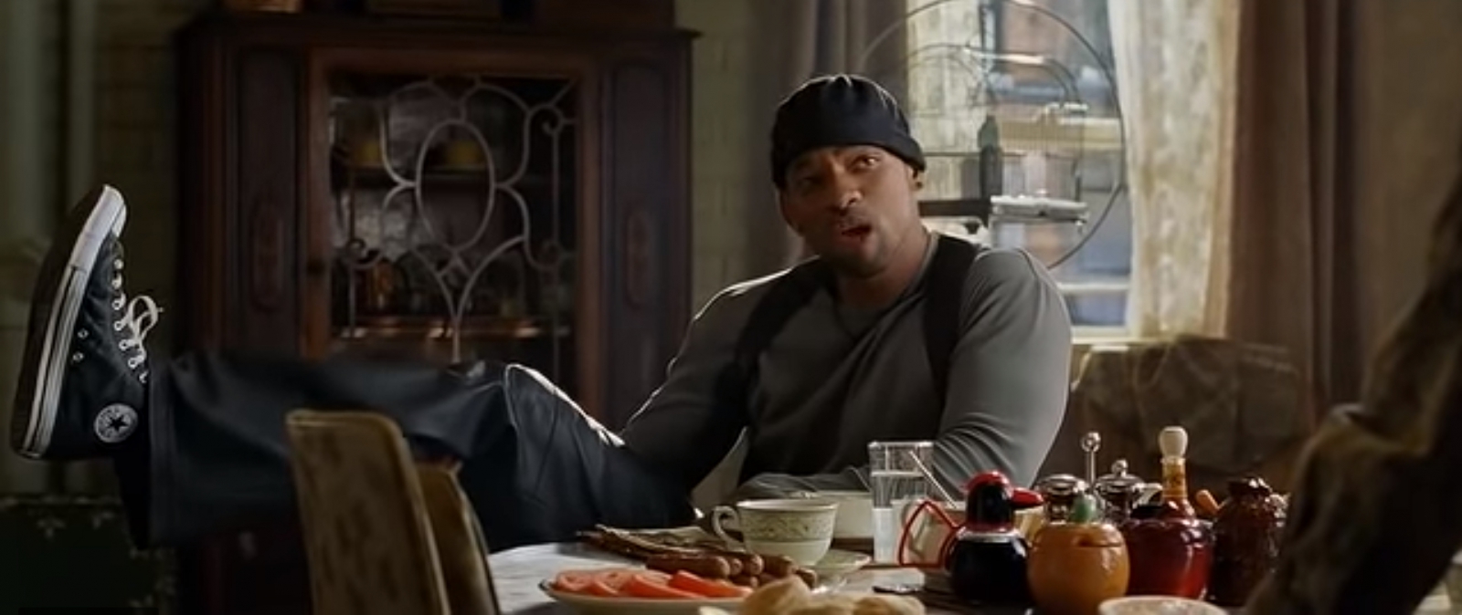 พระเอกกำลังพูดถึงชื่อรองเท้า Converse อย่างภูมิใจ ในภาพยนตร์เรื่อง I, Robot