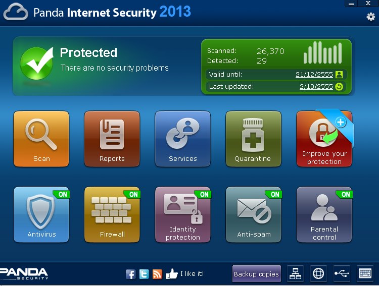 ตัว Panda Internet Security ก็จะถูกออกแบบมาคล้ายกันแต่ว่าจะมี Interface ที่มากกว่า