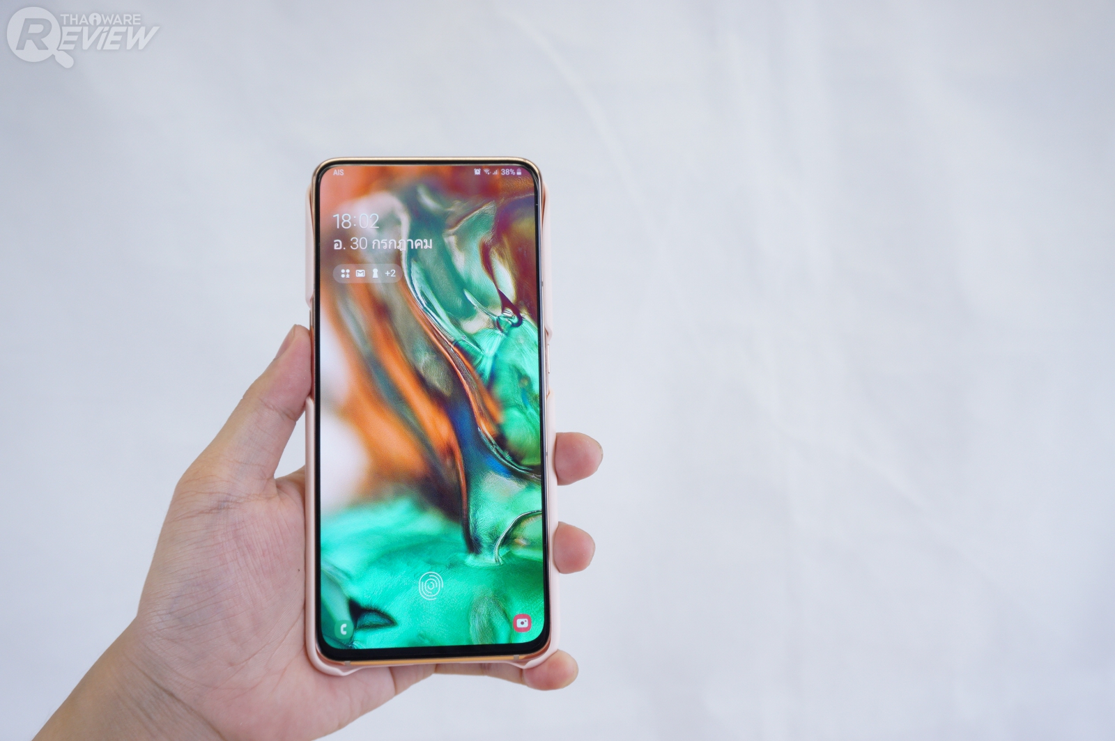 และสาเหตุที่ Galaxy A80 มีหน้าจอแบบเต็มๆ เพราะว่ามีกล้องหน้า+กล้องหลัง ที่สามารถซ่อนเข้าไปในตัวเครื่อง และมีการย้ายลำโพงไปไว้อยู่ใต้จอ รวมถึงเซ็นเซอร์สแกนลายนิ้วมือด้วย ทำให้เหลือแต่หน้าจอเพียวๆ