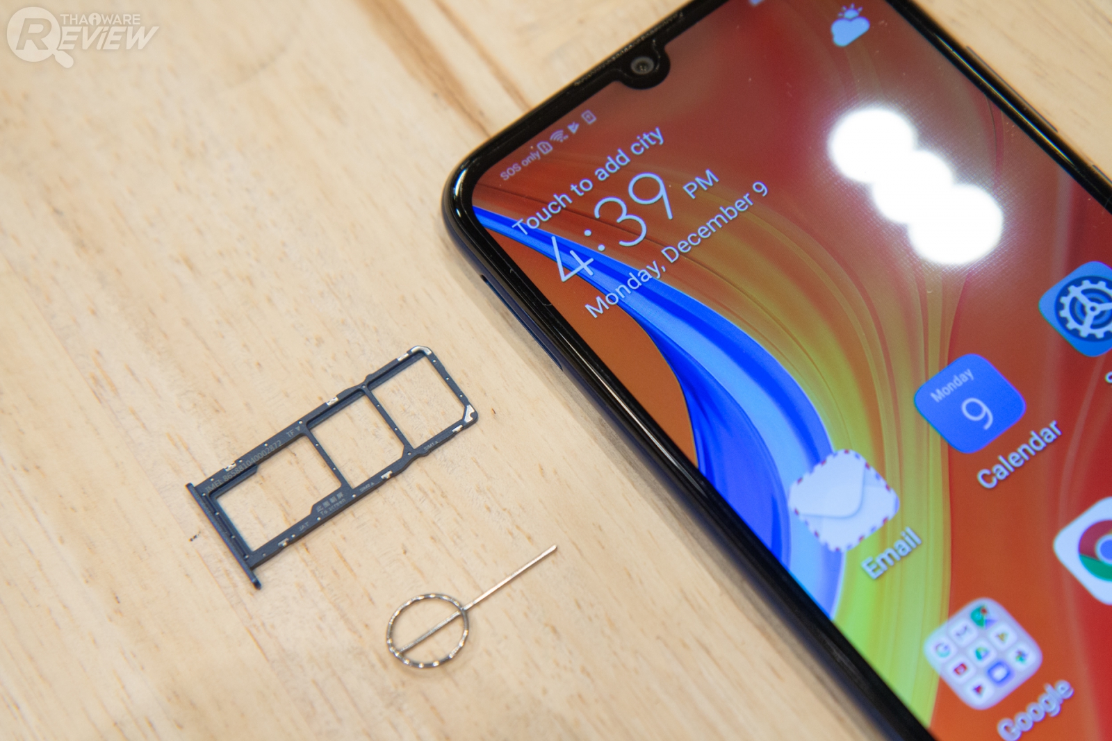 ถาดซิมของ Huawei Y6s สามารถใส่ได้ทั้ง 2 ซิม + 1 Micro SD โดยไม่ต้องเลือกใส่ และถึงแม้ว่าหน่วยความจำเครื่องจะให้มาแค่พอใช้เพียง 64GB แต่ก็สามารถซื้อ Micro SD มาเพิ่มได้สูงสุดถึง 512 GB ได้อีกด้วย (ซึ่งการ์ดที่คลาสดีๆ หน่อย ราคาเกือบเท่าราคาเครื่องอยู่แล้ว)