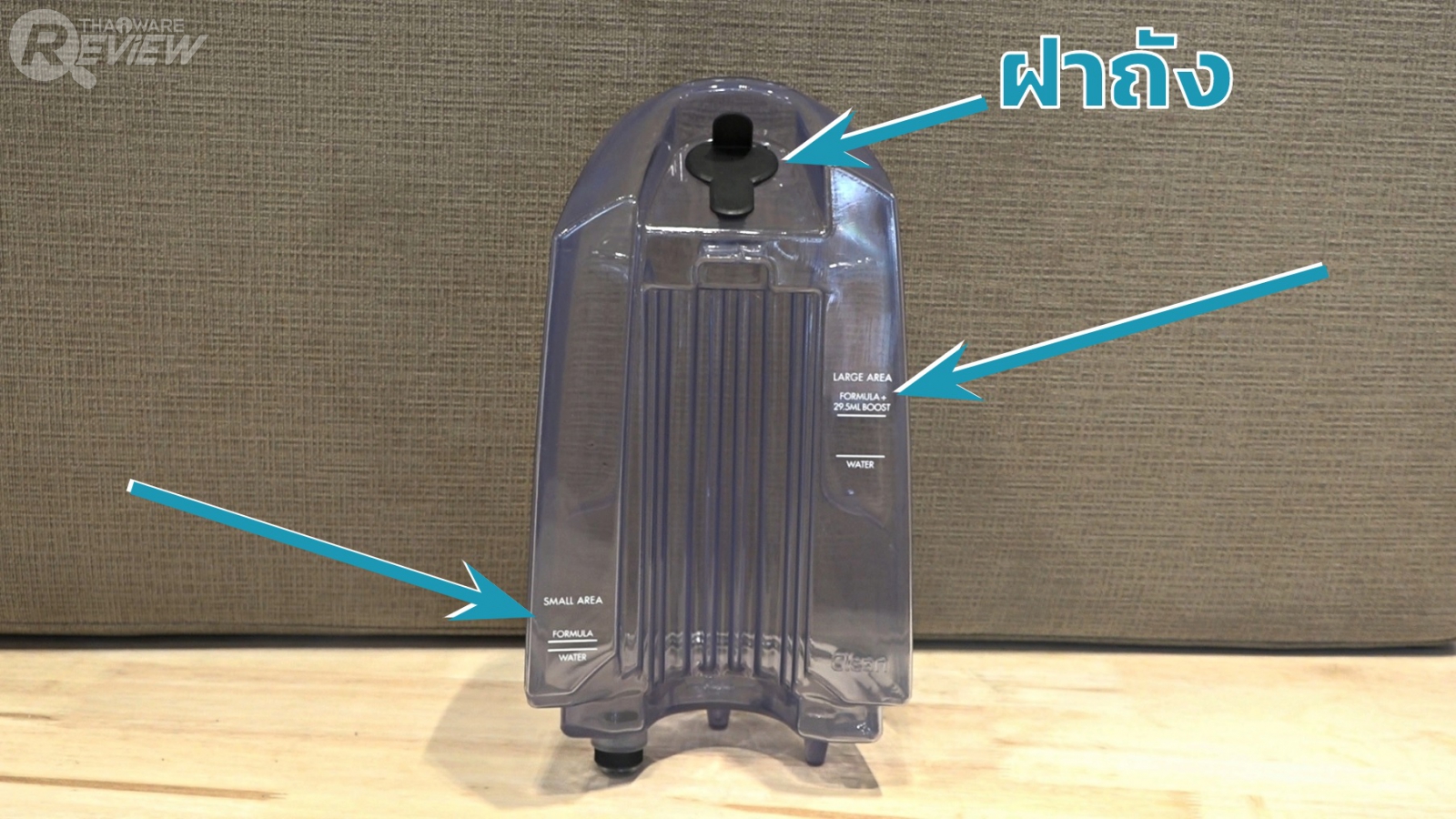โดยถังผสมน้ำยาทำความสะอาด อยู่ทางด้านซ้ายของตัวเครื่อง ถอดออกมาได้เลย