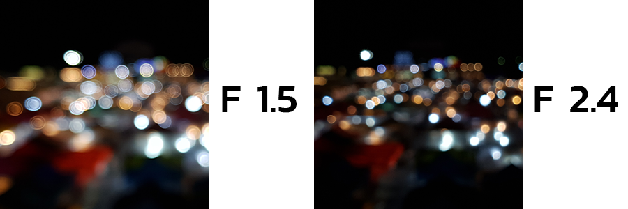 (ภาพแสดงขนาดโบเก้ ของรูรับแสงทั้งสองแบบ)