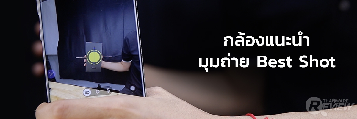 แถมยังมีฟีเจอร์อีกอย่างนึง นั่นก็คือ ฟีเจอร์แนะนำมุมถ่ายภาพ (Shot Suggestion) ซึ่งเวลาที่เราถ่ายภาพ เมื่อเราเล็งภาพ ตัวกล้องจะวิเคราะห์หามุม ว่าควรวางองค์ประกอบภาพอย่างไร โดยจะขึ้นจุดแนะนำ Best Shot บนหน้าจอ (จุดสีเหลือง)ให้ได้มุมที่เหมาะกับรูปภาพนั้นๆ