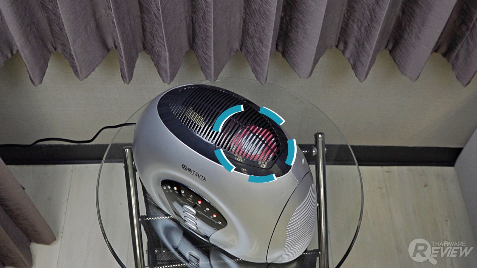 เรื่องที่น่าเซอร์ไพรส์คือ เจ้าเครื่องฟอกอากาศนี้มีช่องใส่ตลับเจลน้ำหอมปรับอากาศอยู่ทางด้านบนตัวเครื่อง เพื่อปล่อยกลิ่นหอมอ่อนๆ ออกมาทำให้บรรยากาศในห้องดีขึ้น โดยช่องใส่ตลับเจลอยู่ในตำแหน่งที่วงไว้ในภาพด้านบน