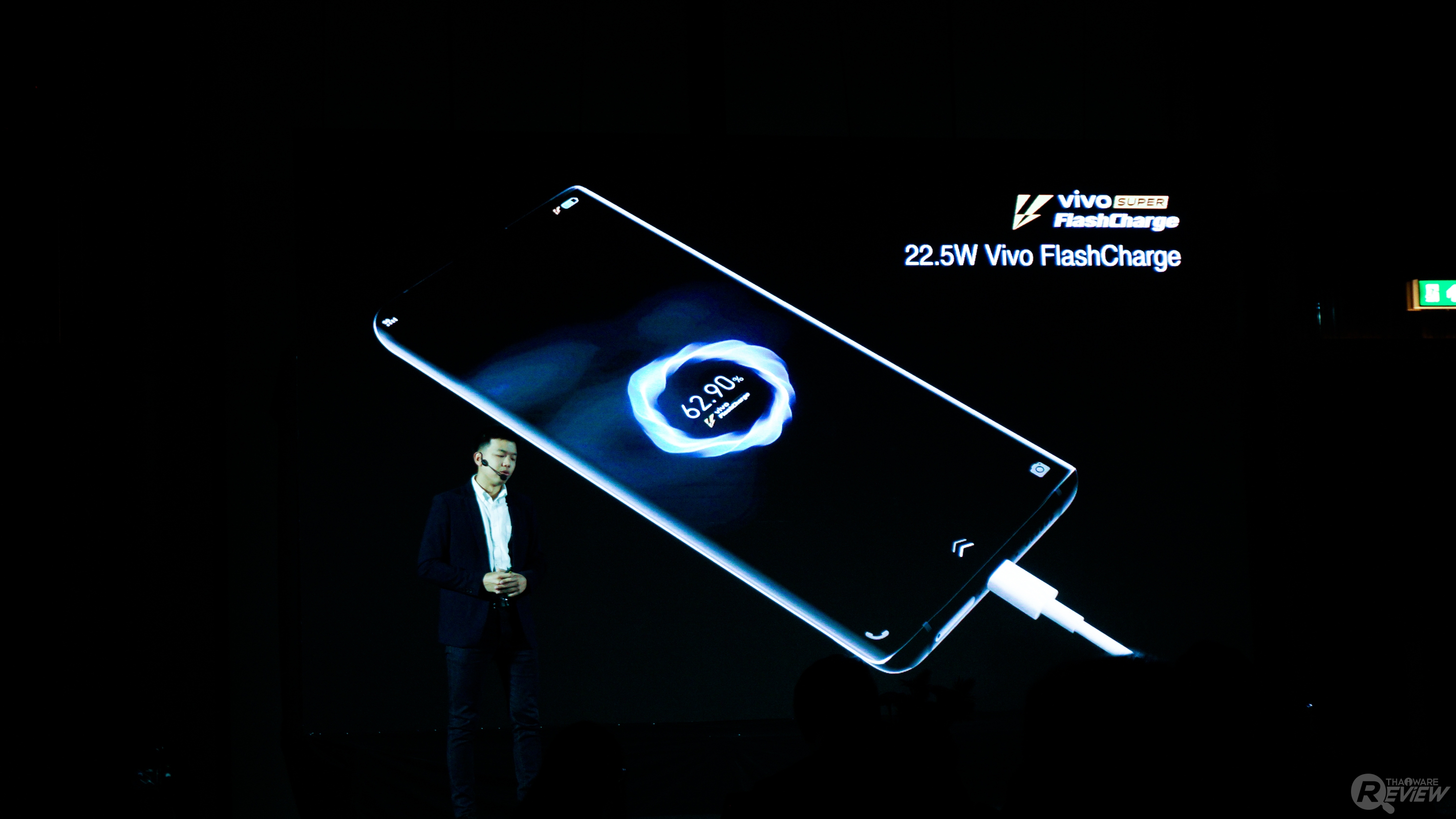การชาร์จแบบ 22.5W Vivo FlashCharge ชาร์จให้แบตฯ 4,500 mAh เต็ม 100% ได้อย่างรวดเร็วภายในเวลา 1 ชั่วโมง แอบเสียดายนิดๆ ที่เทคโนโลยีชาร์จเร็วแบบในข่าวลือ Nex 3 ชาร์จด่วนมาตรฐานโหด อาจจะมีในรุ่นถัดไปแทน