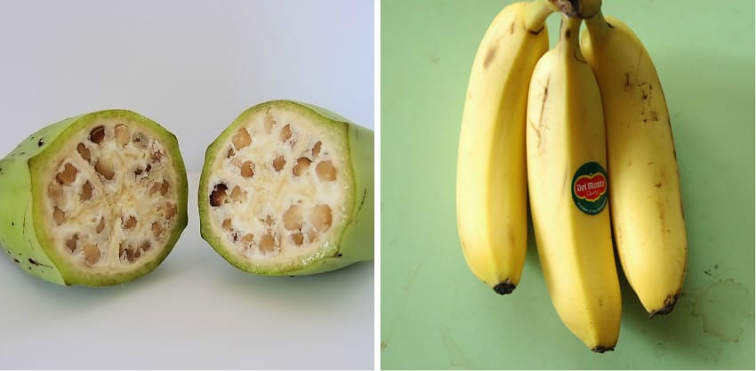 คาดว่าจะดัดแปลงมาจากกล้วยป่า (Musa acuminata) และกล้วยตานี (Musa balbisiana) จนได้มาเป็นกล้วยหลากหลายสายพันธุ์อย่างในปัจจุบันนี้ที่มีจำนวนเม็ดที่น้อยกว่า, รสชาติดีกว่า และมีสารอาหารมากกว่ากล้วยในยุคแรกๆ