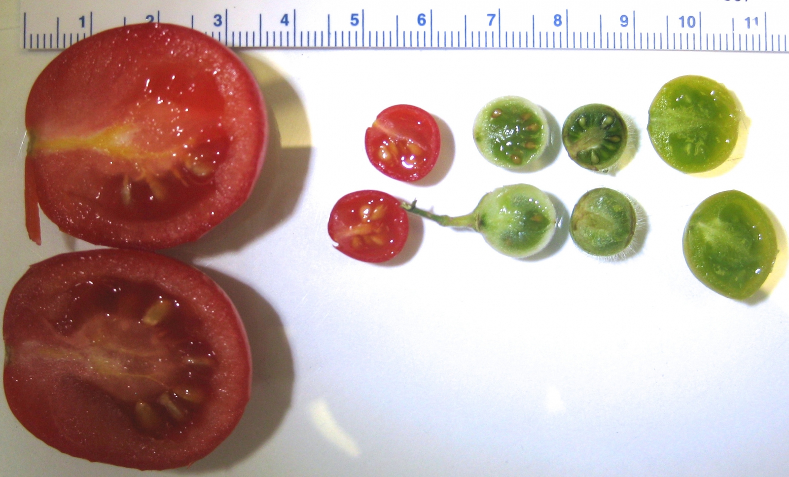 เช่นเดียวกับลูกพีช มะเขือเทศก่อนหน้านี้ก็มีขนาดใกล้เคียงกับผลเบอร์รีเล็กๆ เพียงเท่านั้น